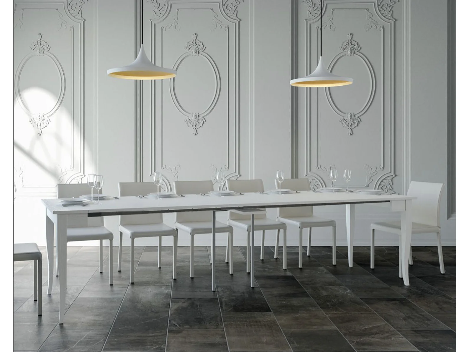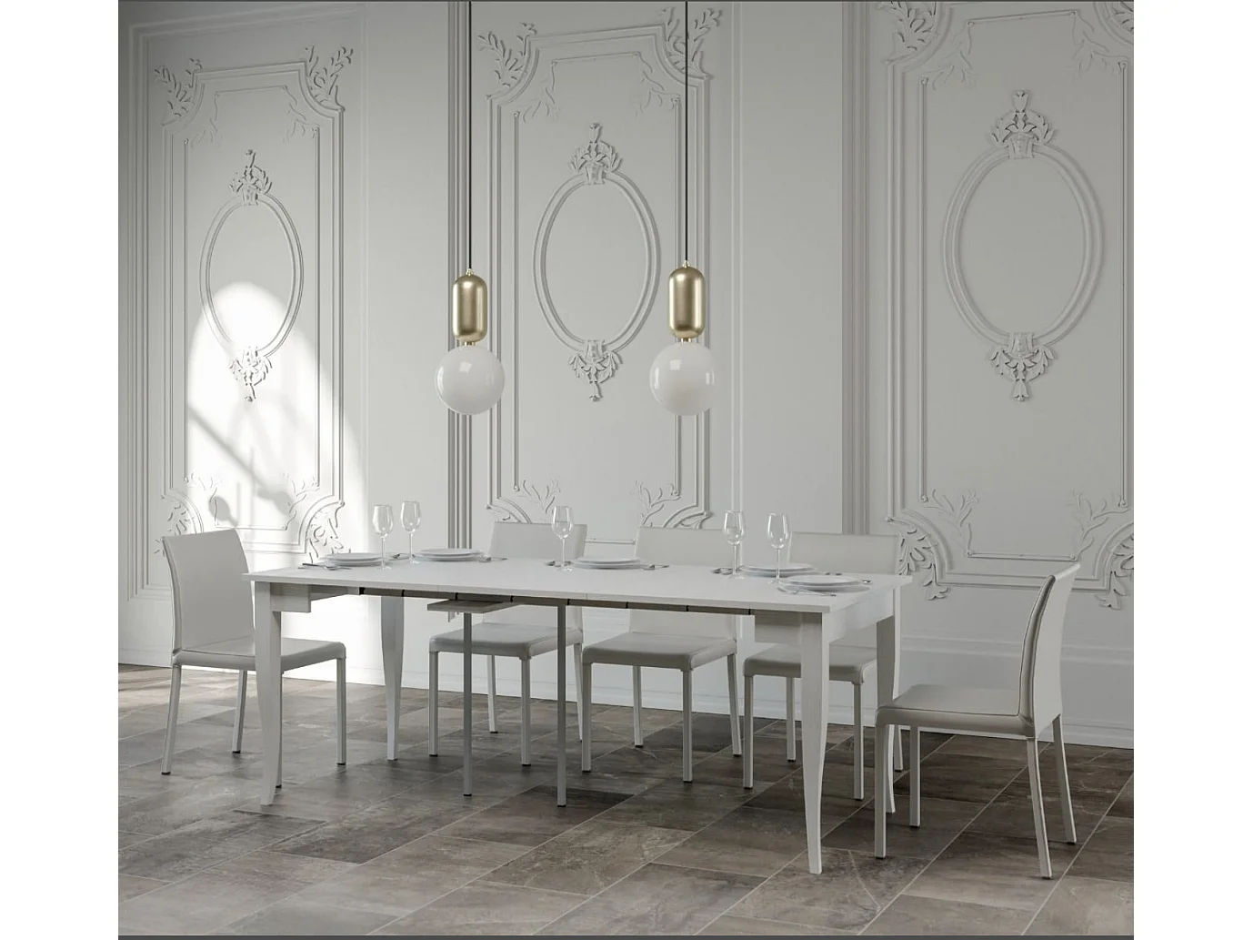 Console extensible classique en bois Kamila-Couleur Blanc-Sur roulettes-5 rallonges