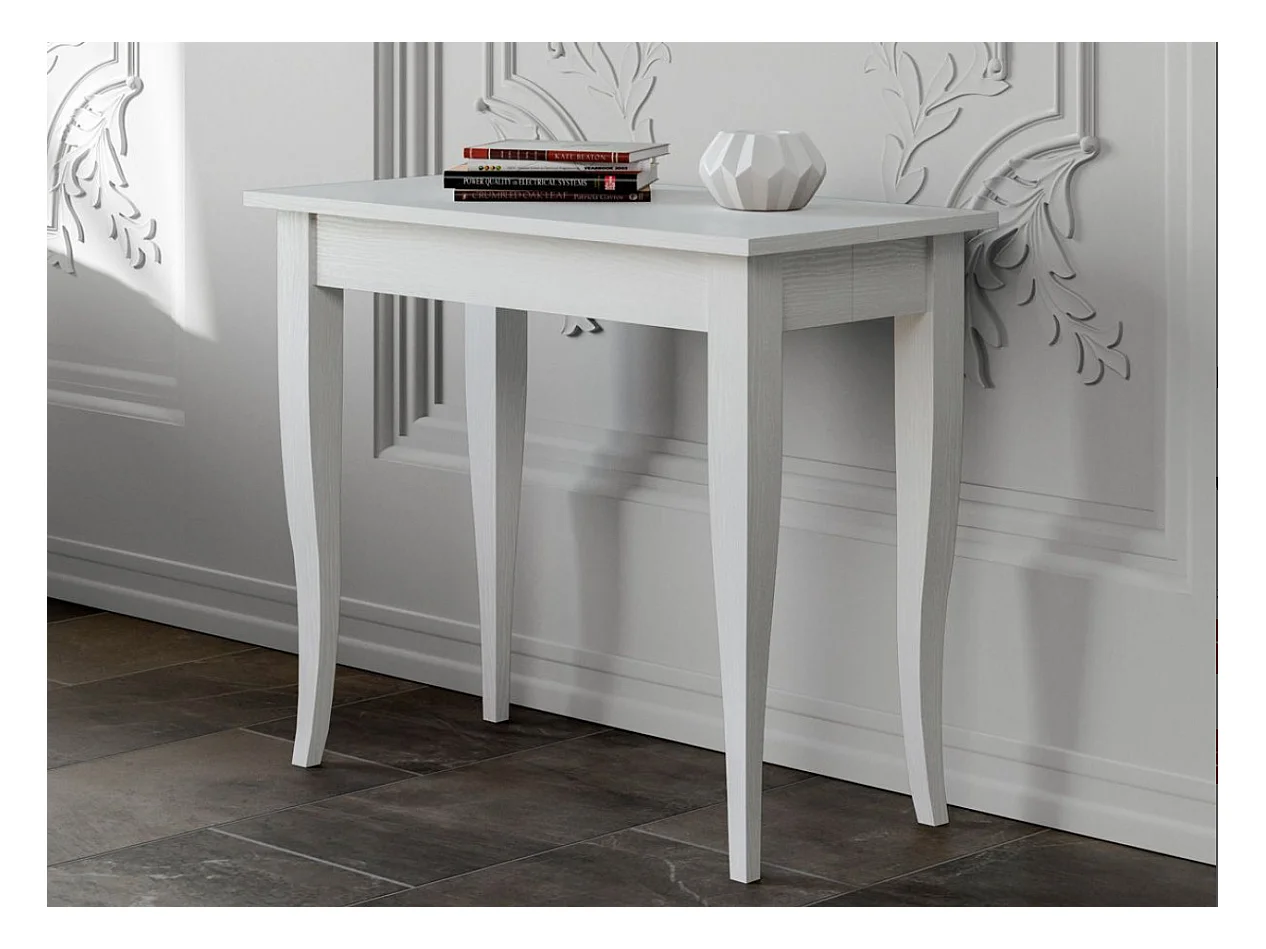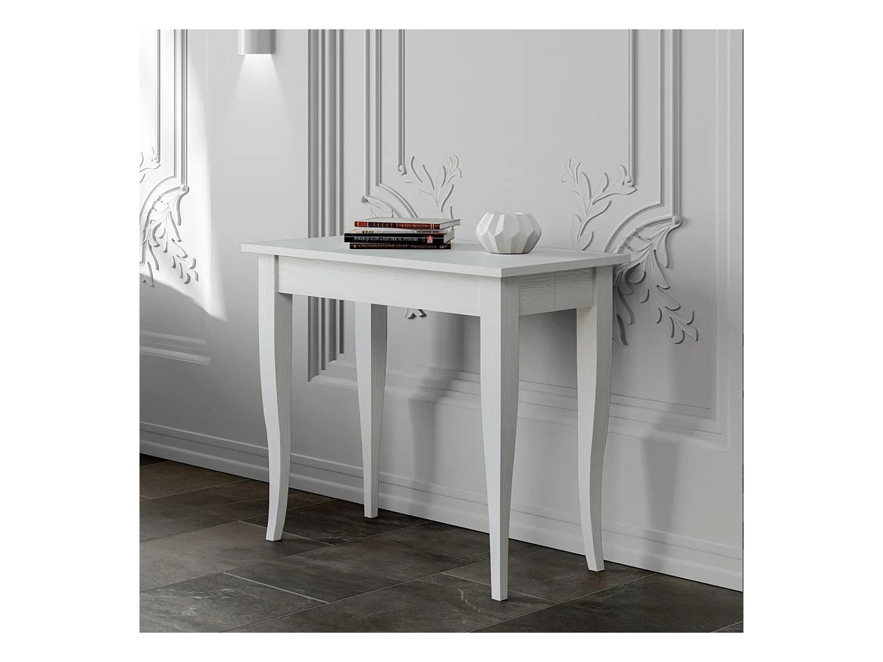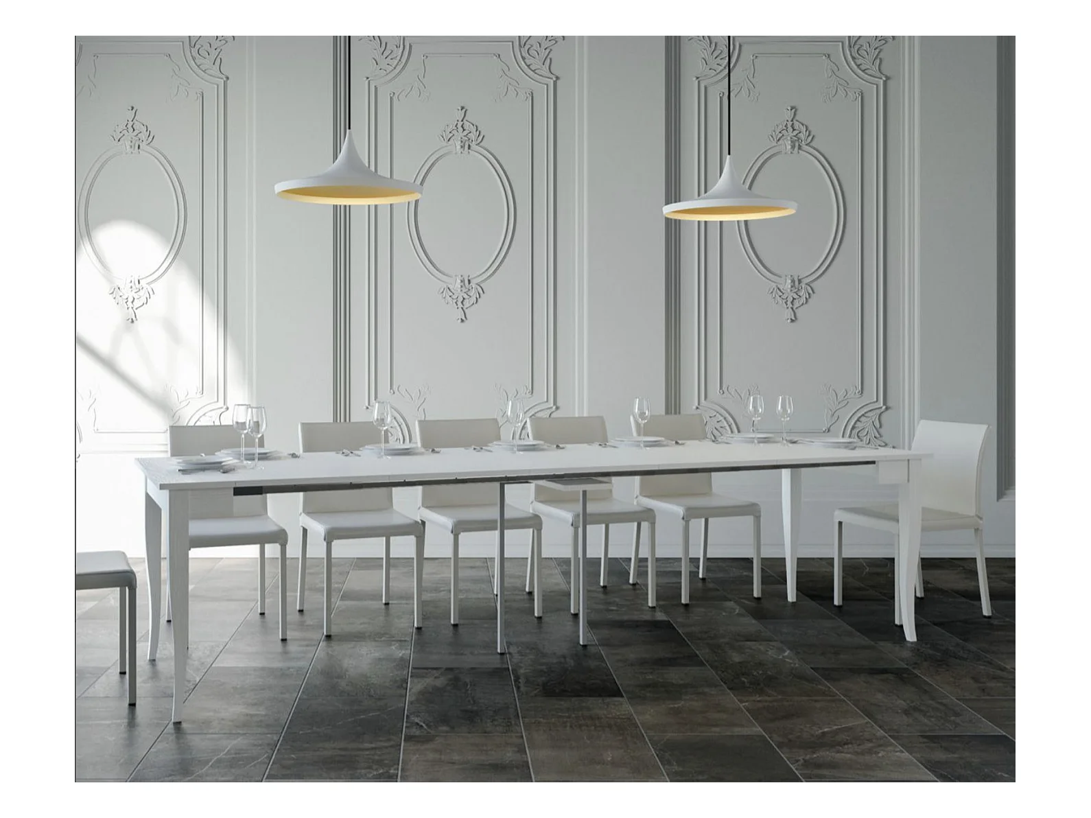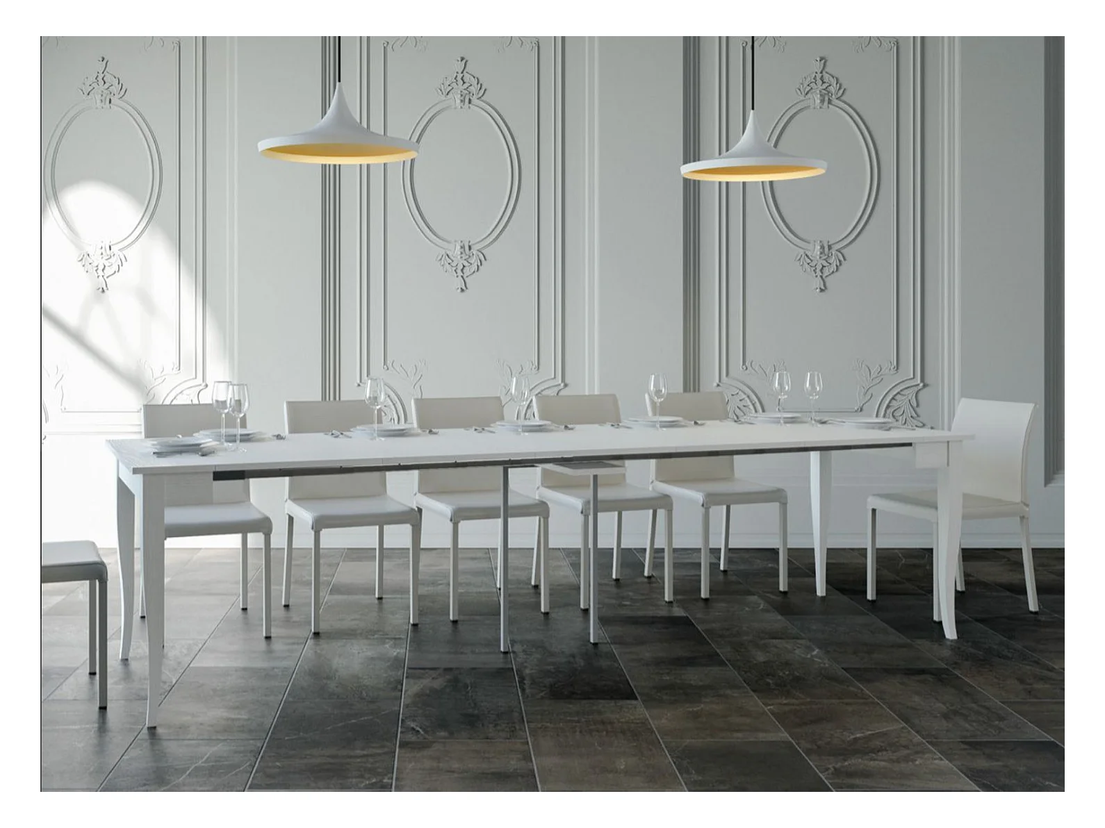 Console extensible classique en bois Kamila-Couleur Blanc-4 pieds-3 rallonges