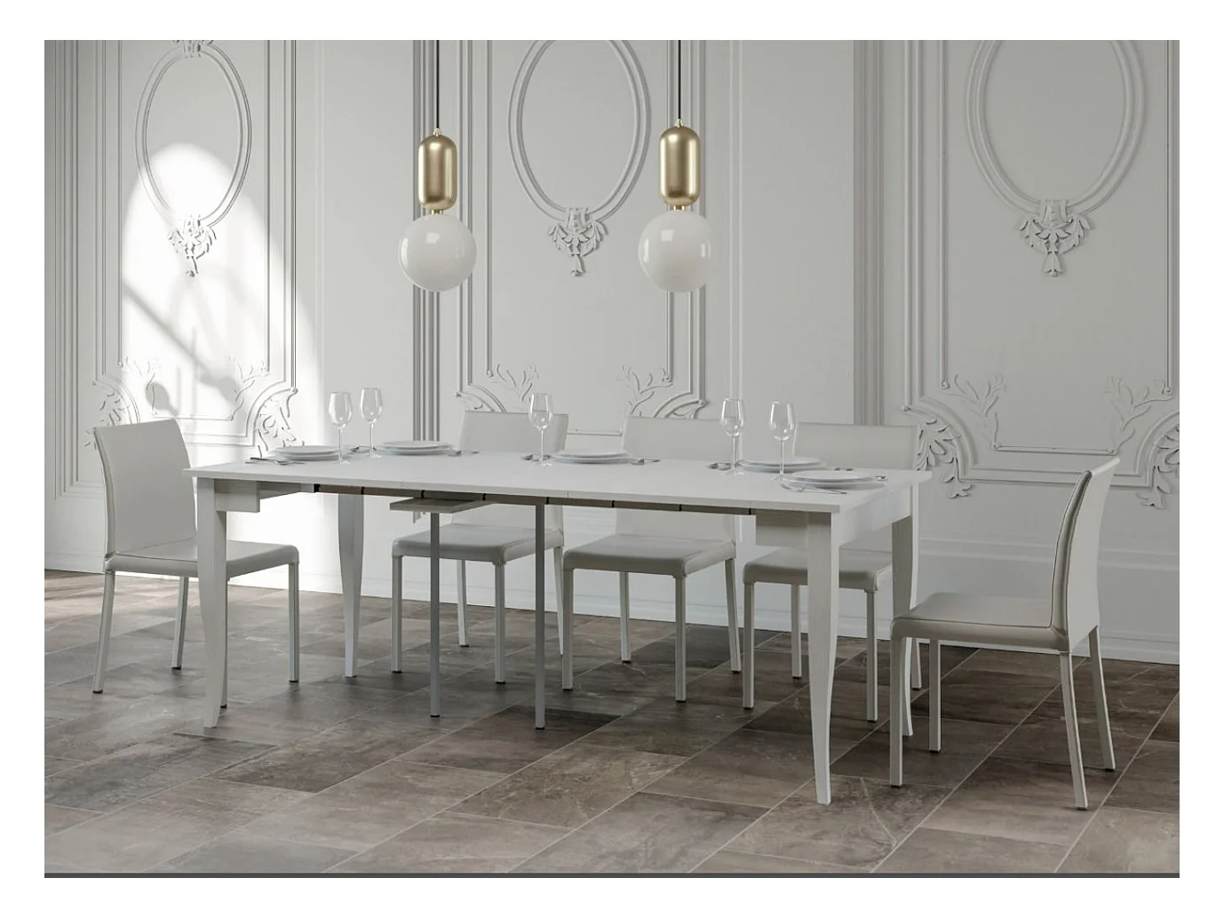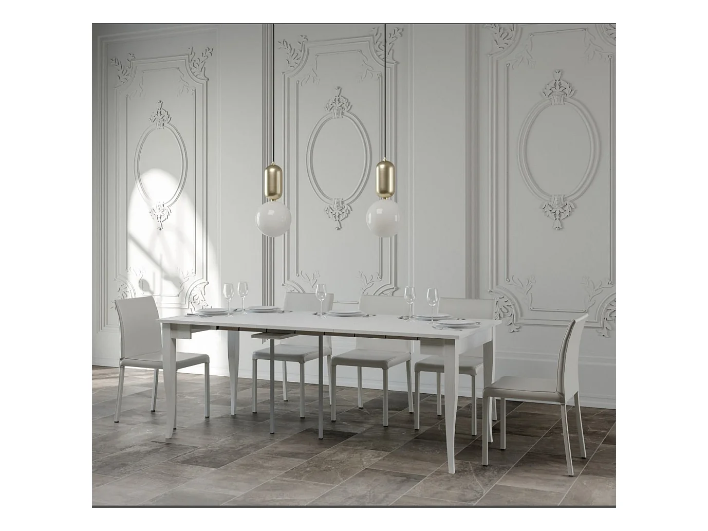 Console extensible classique en bois Kamila-Couleur Blanc-4 pieds-5 rallonges