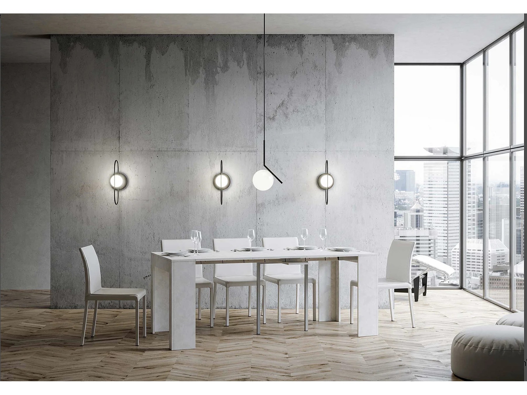 Console extensible contreplaqué spatulé Plako-Couleur Blanc-4 pieds-3 rallonges