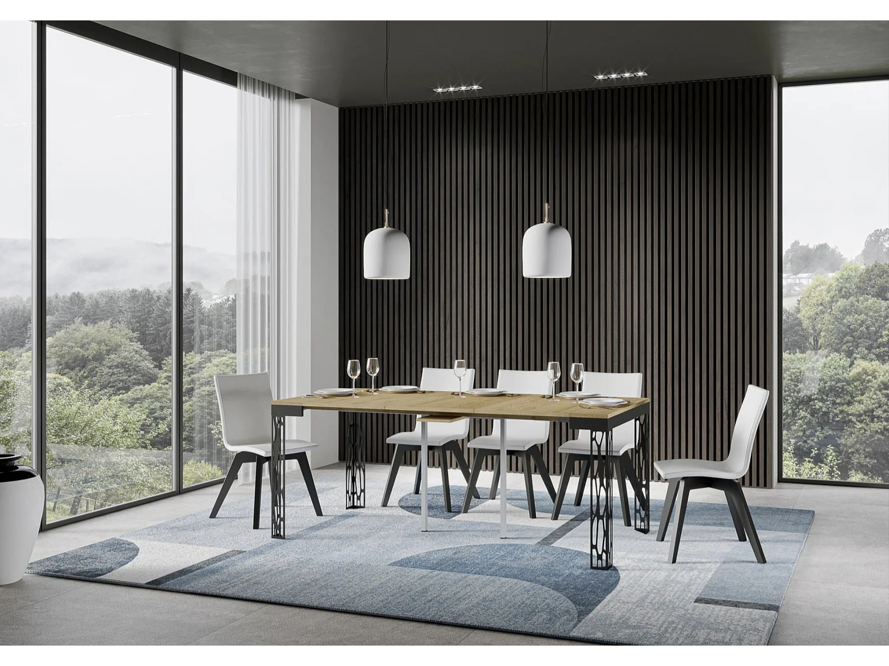 Console extensible bois pieds bois et acier anthracite Liva evolution-Couleur Gris ciment-4 pieds-5 rallonges