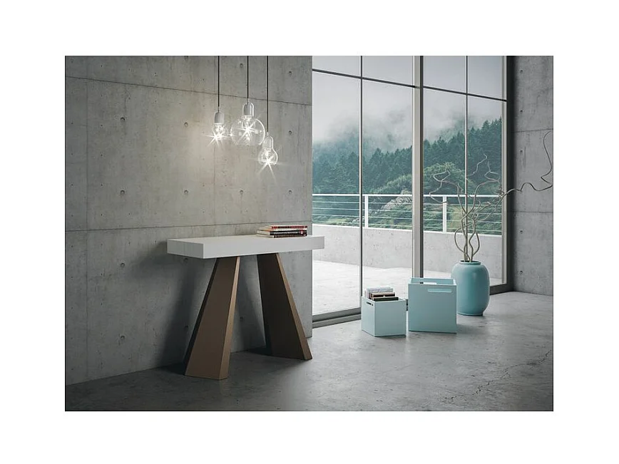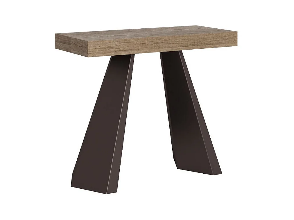 Console extensible design bois et acier marron Diva 90x40-196 ou 90x40-300-Couleur Blanc-3 rallonges épaisses