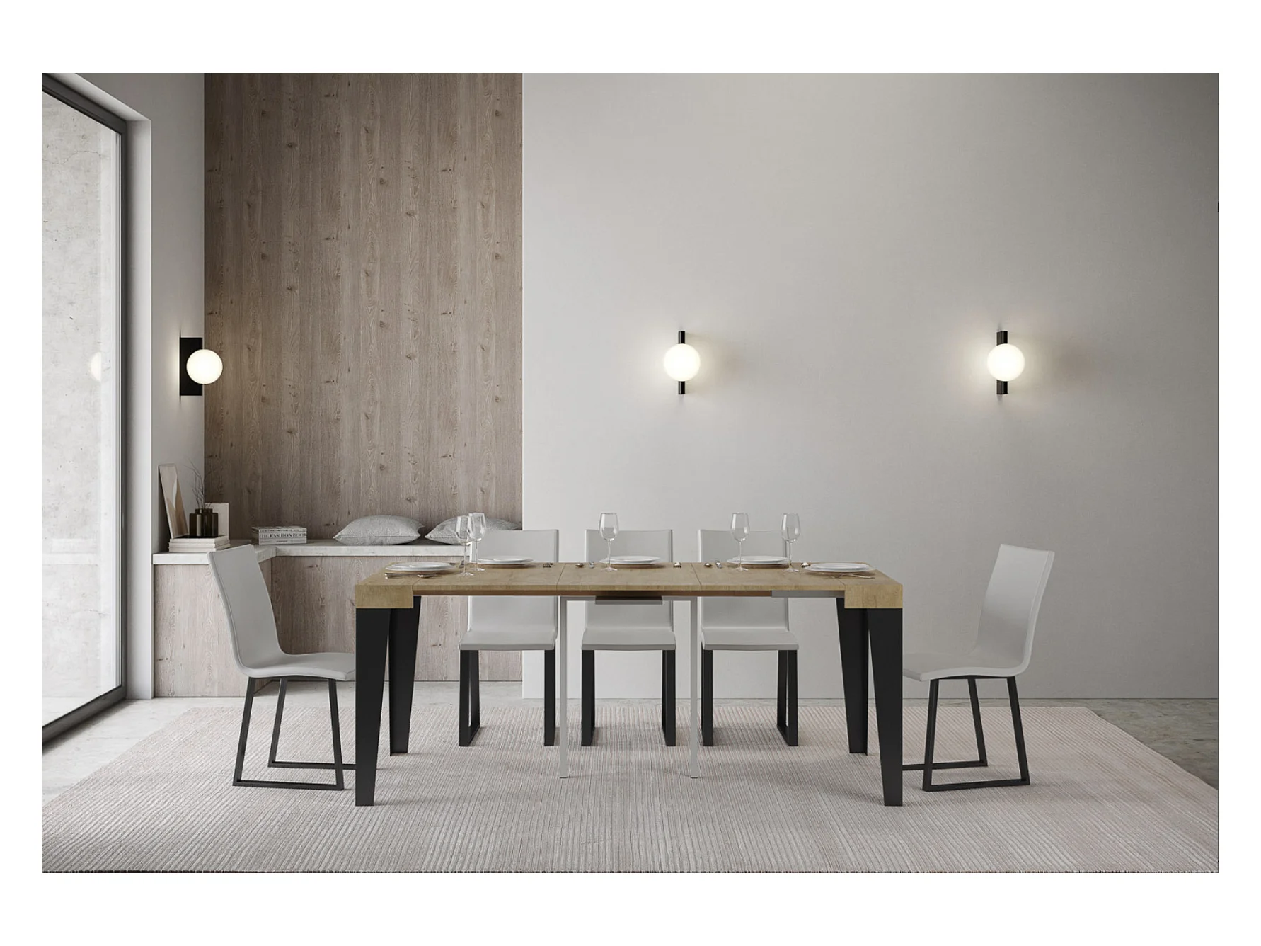 Console extensible design bois et acier mat Flavio-Couleur Naturel-4 pieds-5 rallonges épaisses