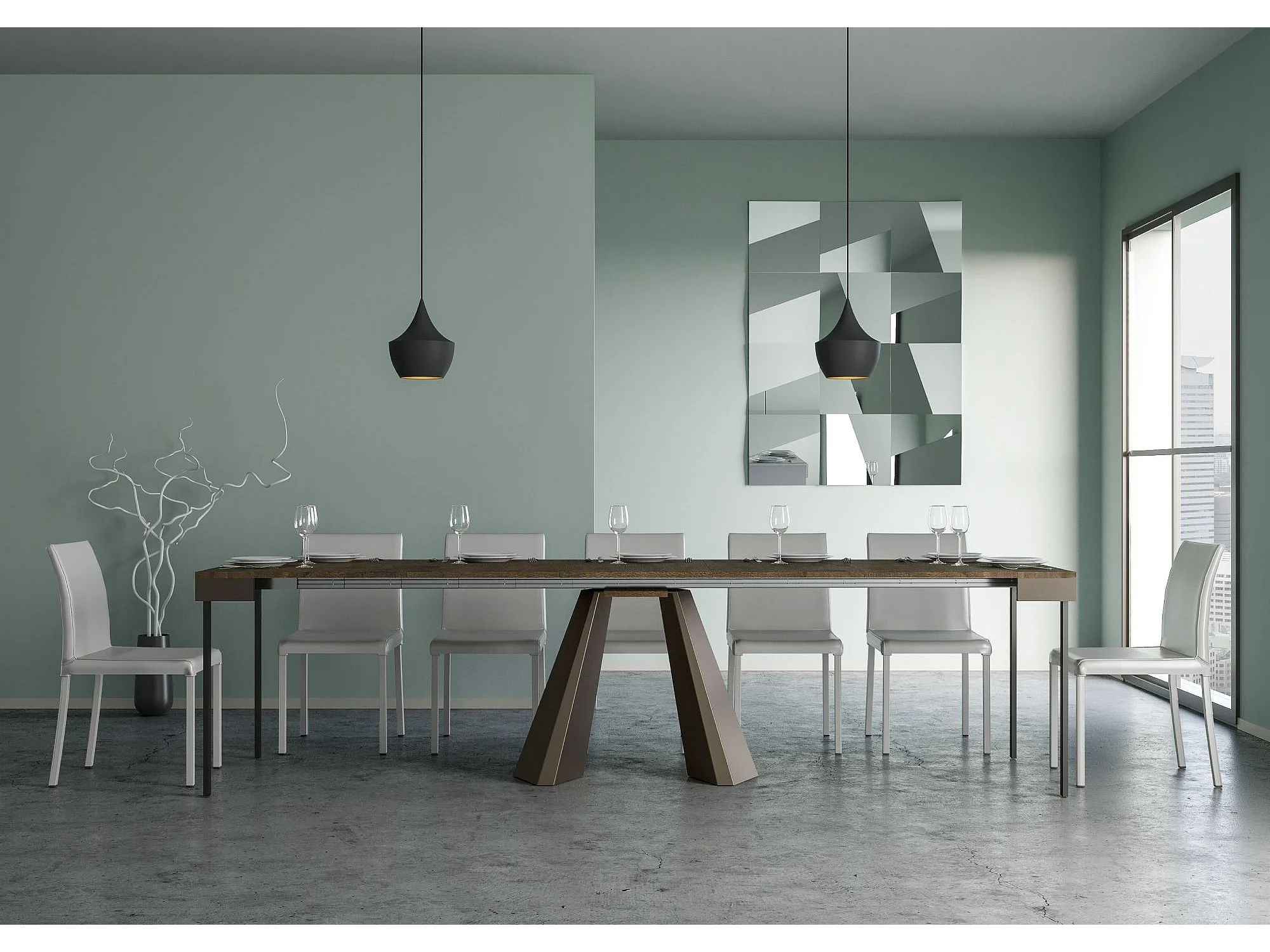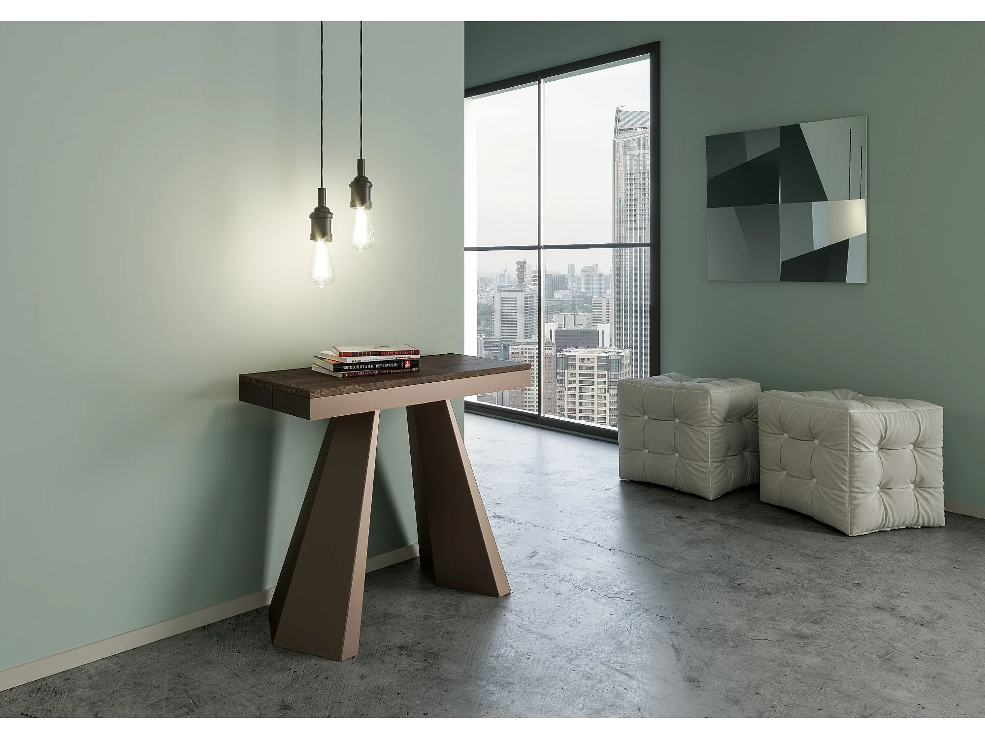 Console extensible design bois et acier mat Flavio-Couleur Marron-4 pieds-3 rallonges fines