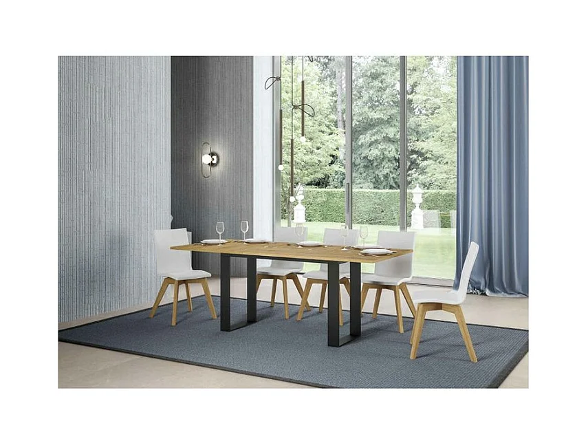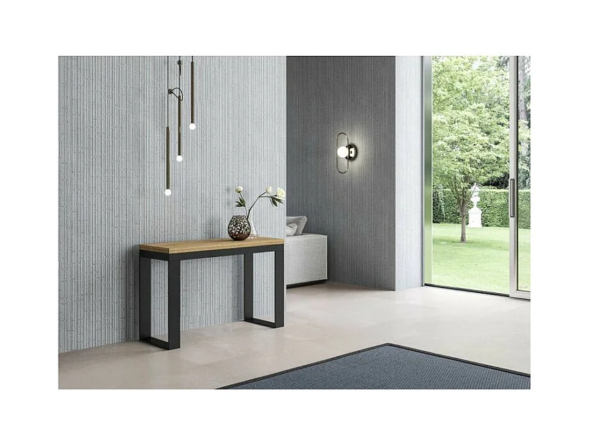 Console extensible double plateau 120x45-90 ou 120-200x45-90 Kouta-Couleur Naturel-Largeur 120 cm