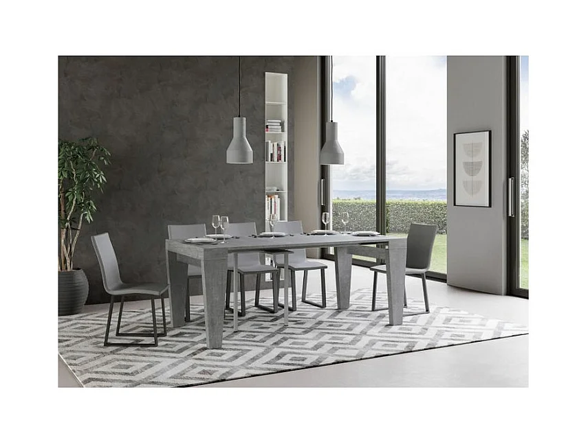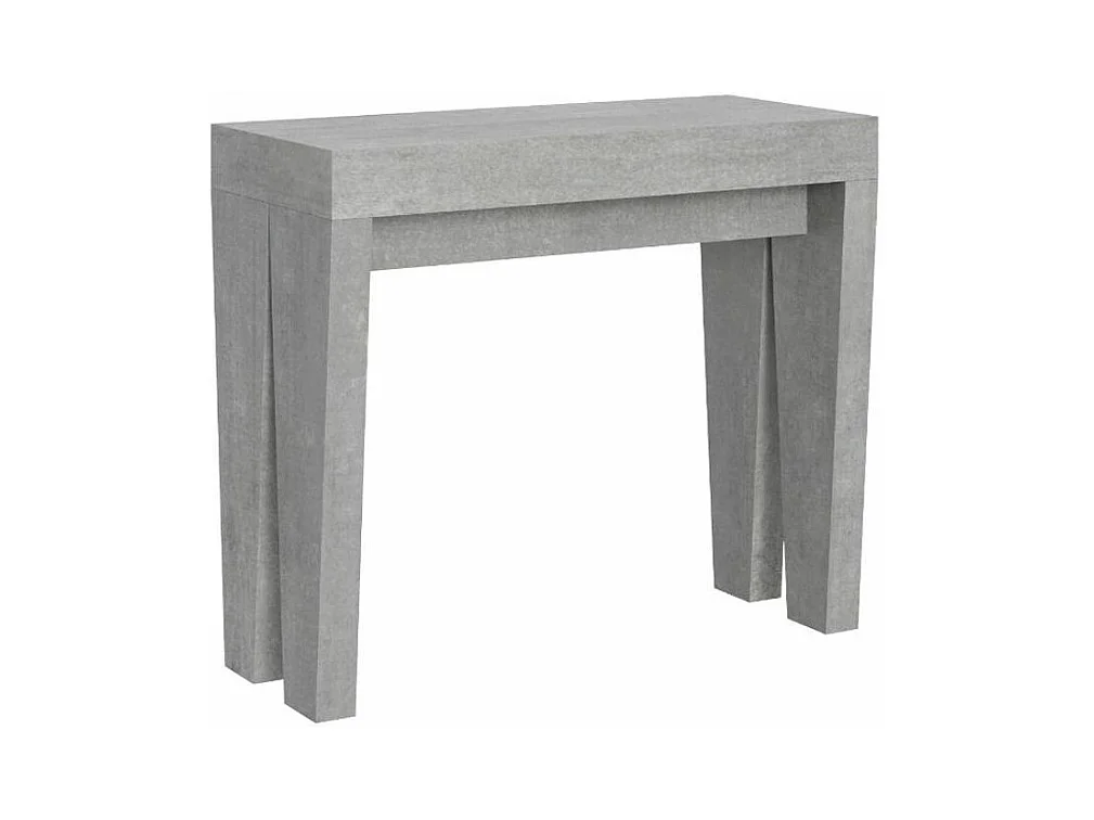 Console extensible en bois Sambo 90x40-196 ou 90x40-300-Couleur Gris ciment-Support 4 pieds-3 rallonges