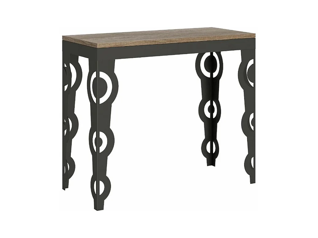 Console extensible bois et acier Tiko 90x40-196 ou 90x40-300-Couleur Naturel-Support 2 pieds-3 rallonges