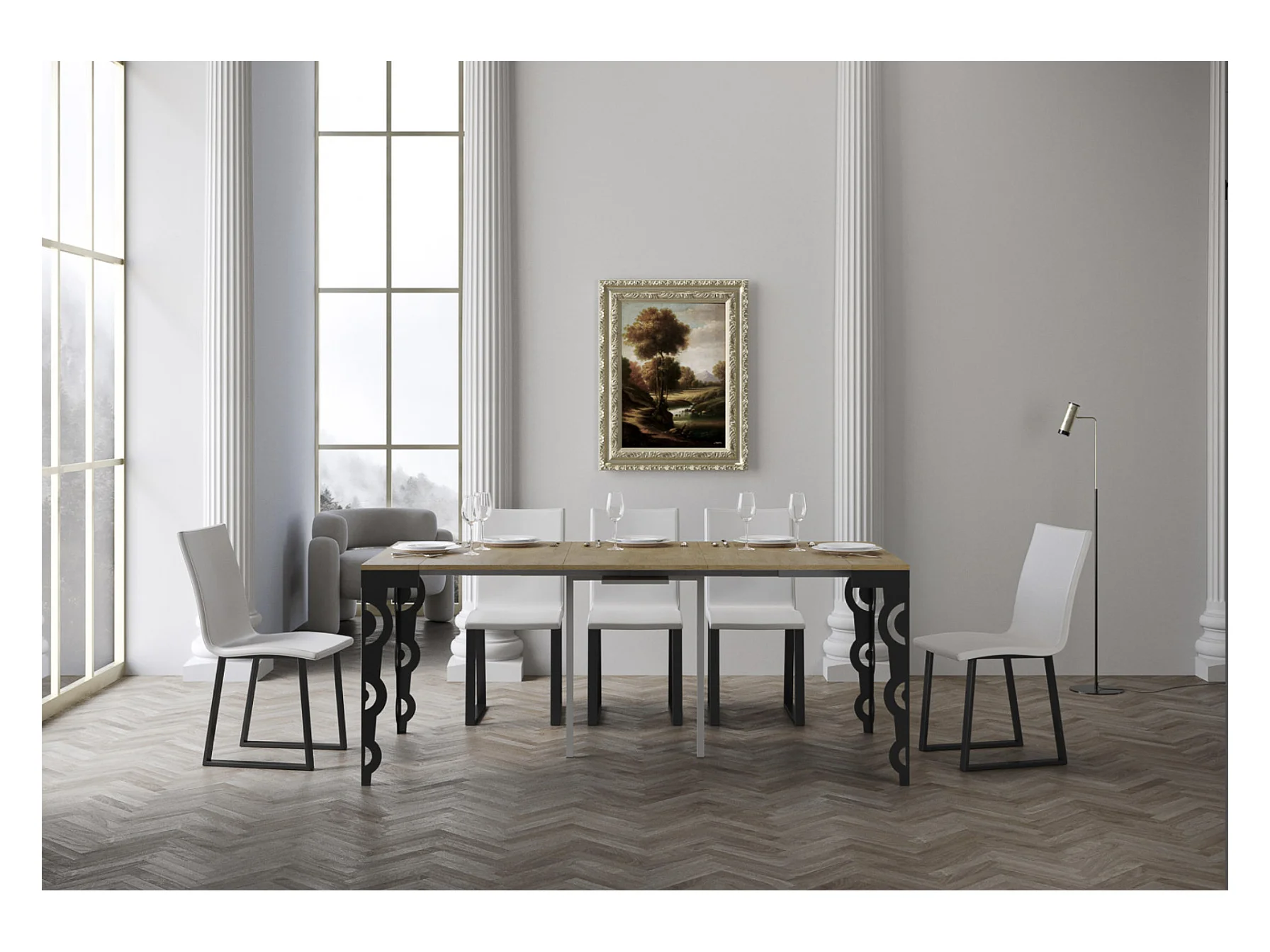 Console extensible bois et acier Tiko 90x40-196 ou 90x40-300-Couleur Naturel-Support 4 pieds-3 rallonges