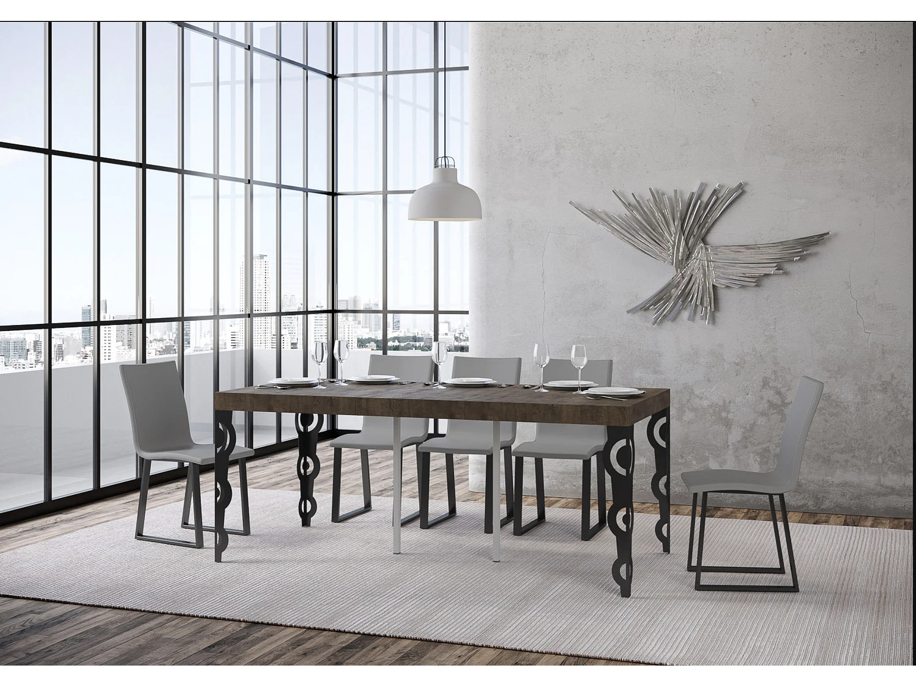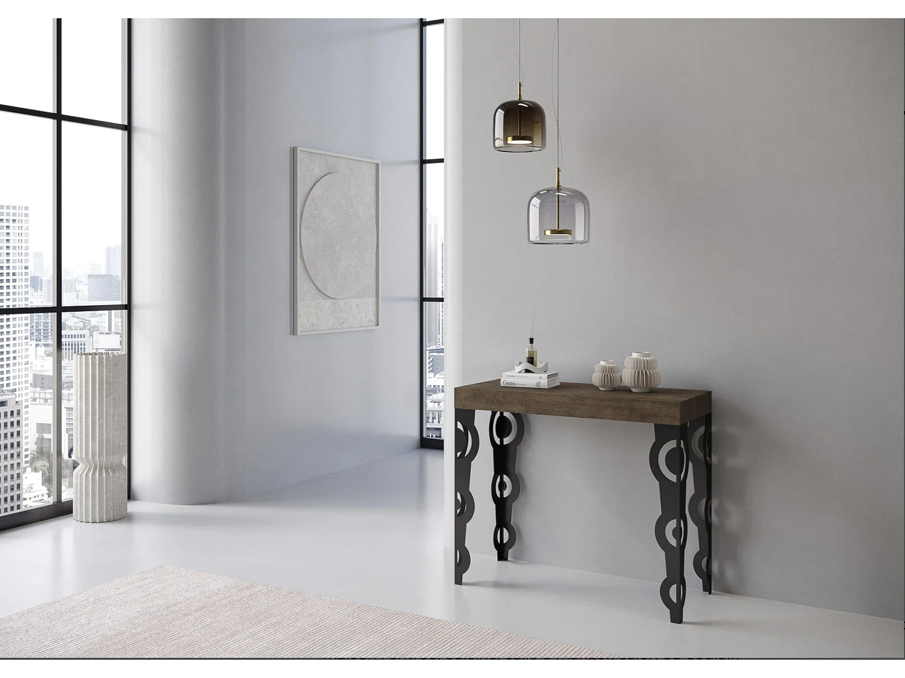 Console extensible style oriental Agadir-Couleur Marron-4 pieds-3 rallonges épaisses