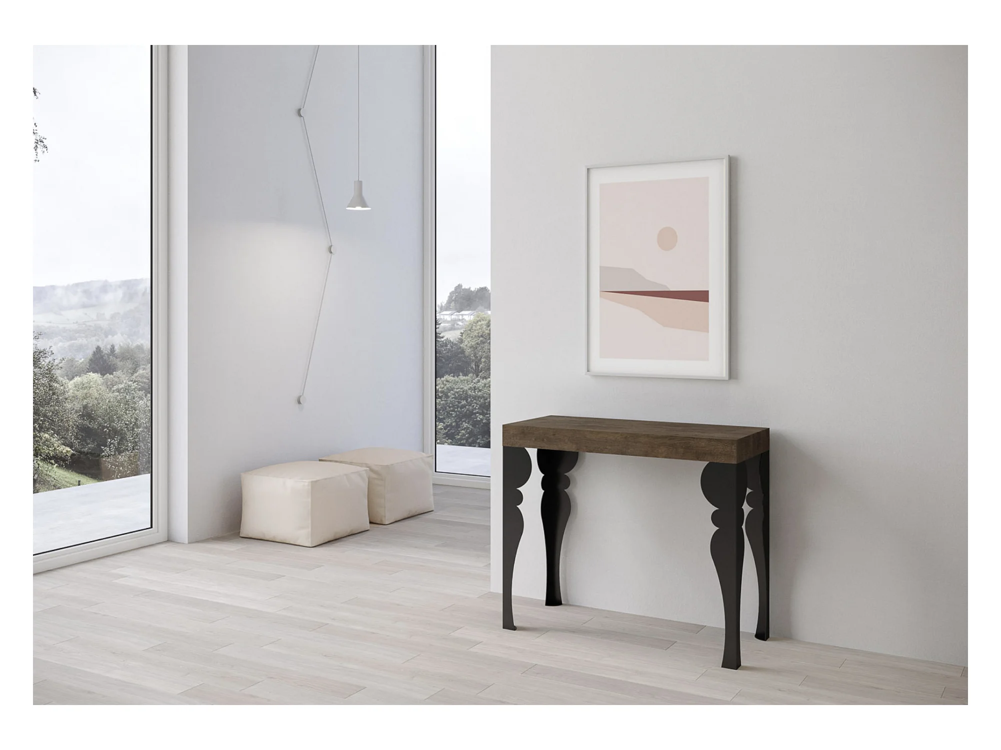 Console extensible bois et acier anthracite Elvira 90x40-196 ou 90x40-300-Couleur Marron-Pied et support sur roulettes-3 rallonges