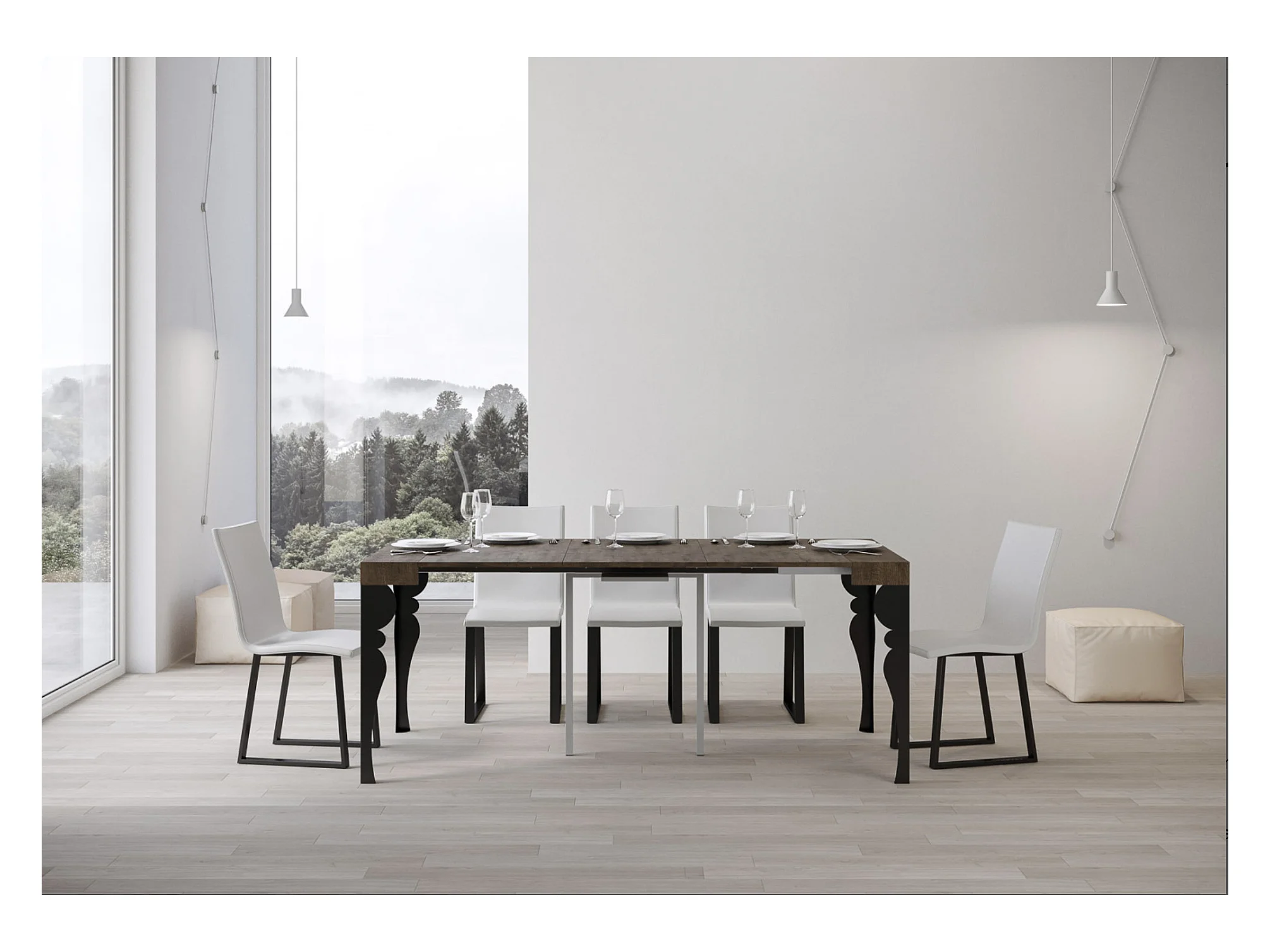 Console extensible bois avec 4 pieds bois et acier anthracite Liva-Couleur Marron-4 pieds-3 rallonges
