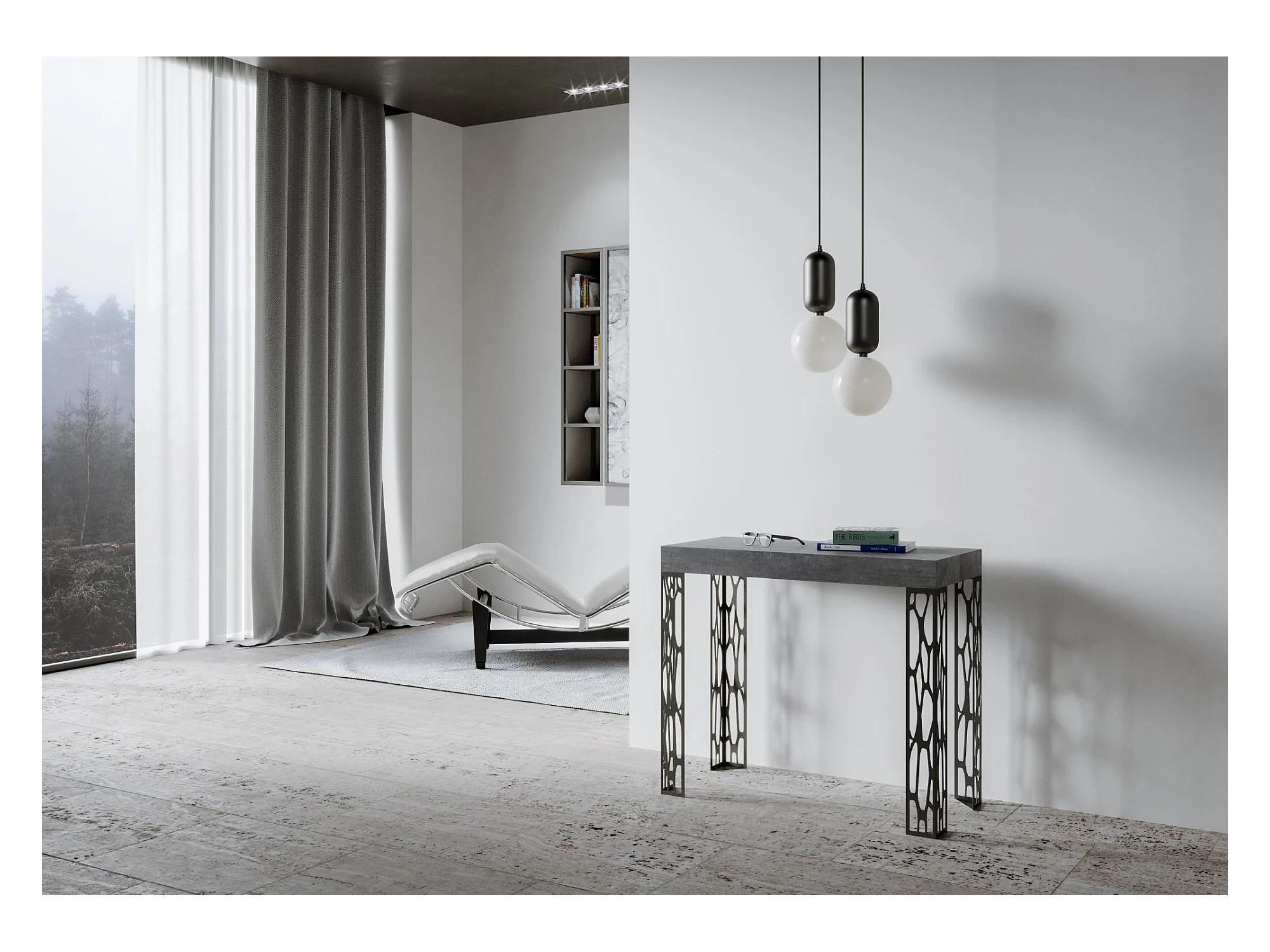 Console extensible 90x40/300 cm Elettra Gris Béton cadre Anthracite
