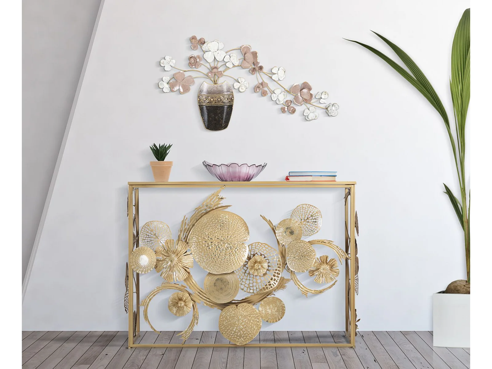 Console en métal doré aux formes abstraites 114x40,5x80 cm