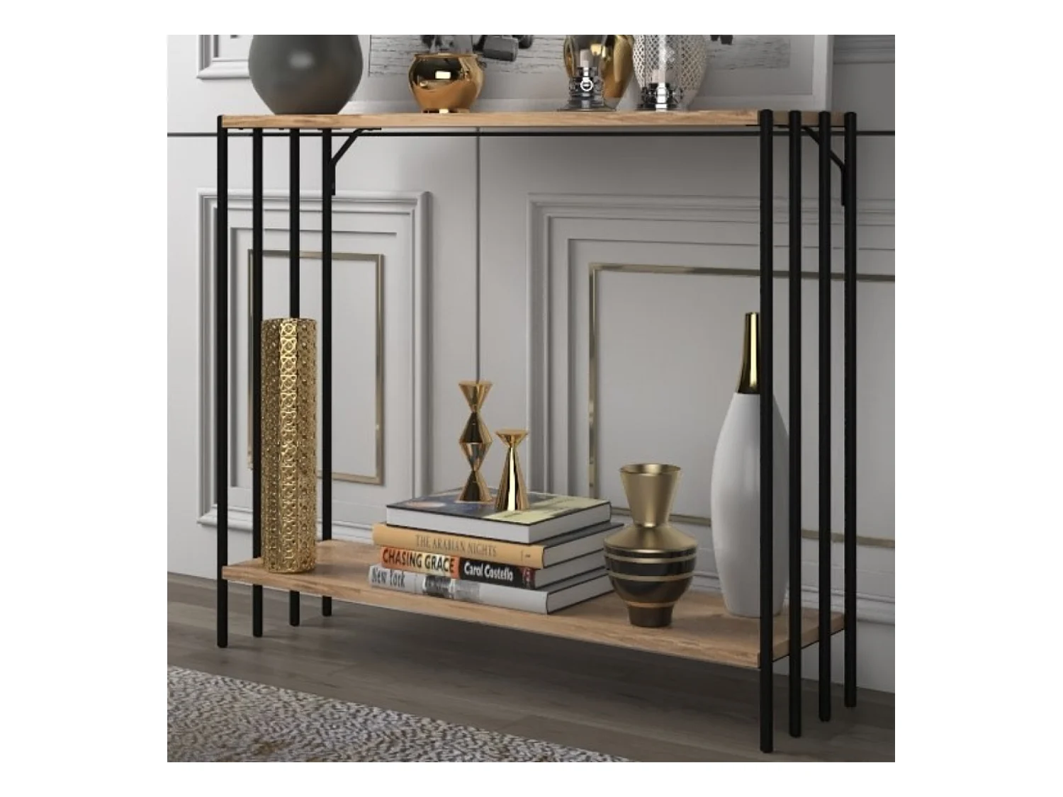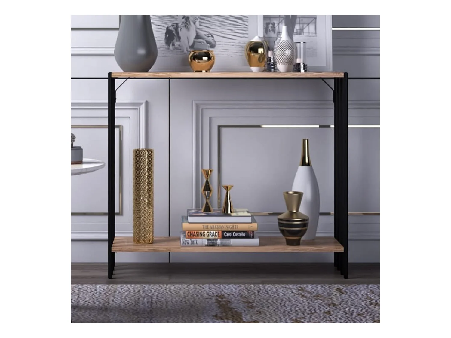 Petite console en bois massif naturel 2 tiroirs 1 étagère Komba 90cm