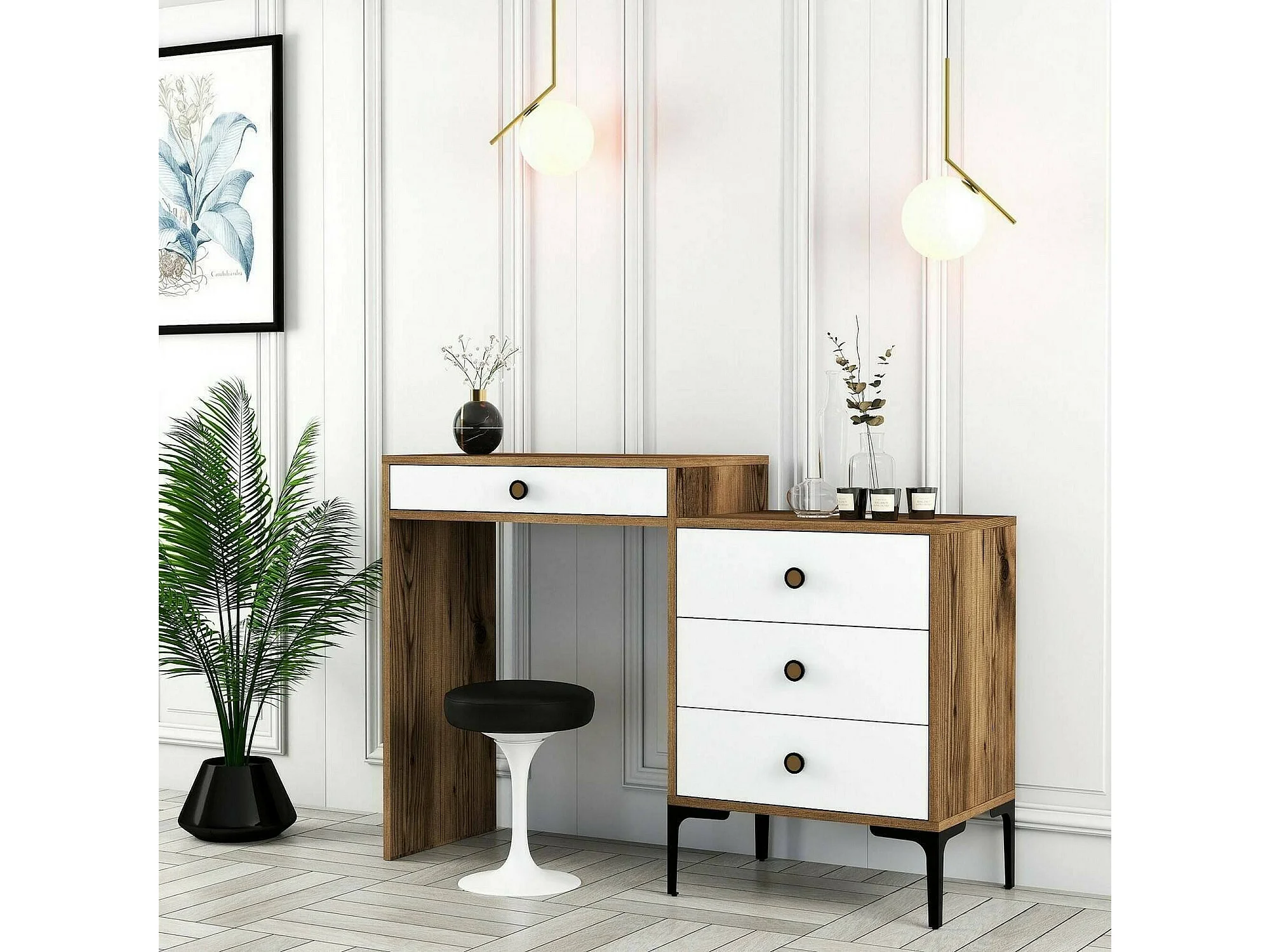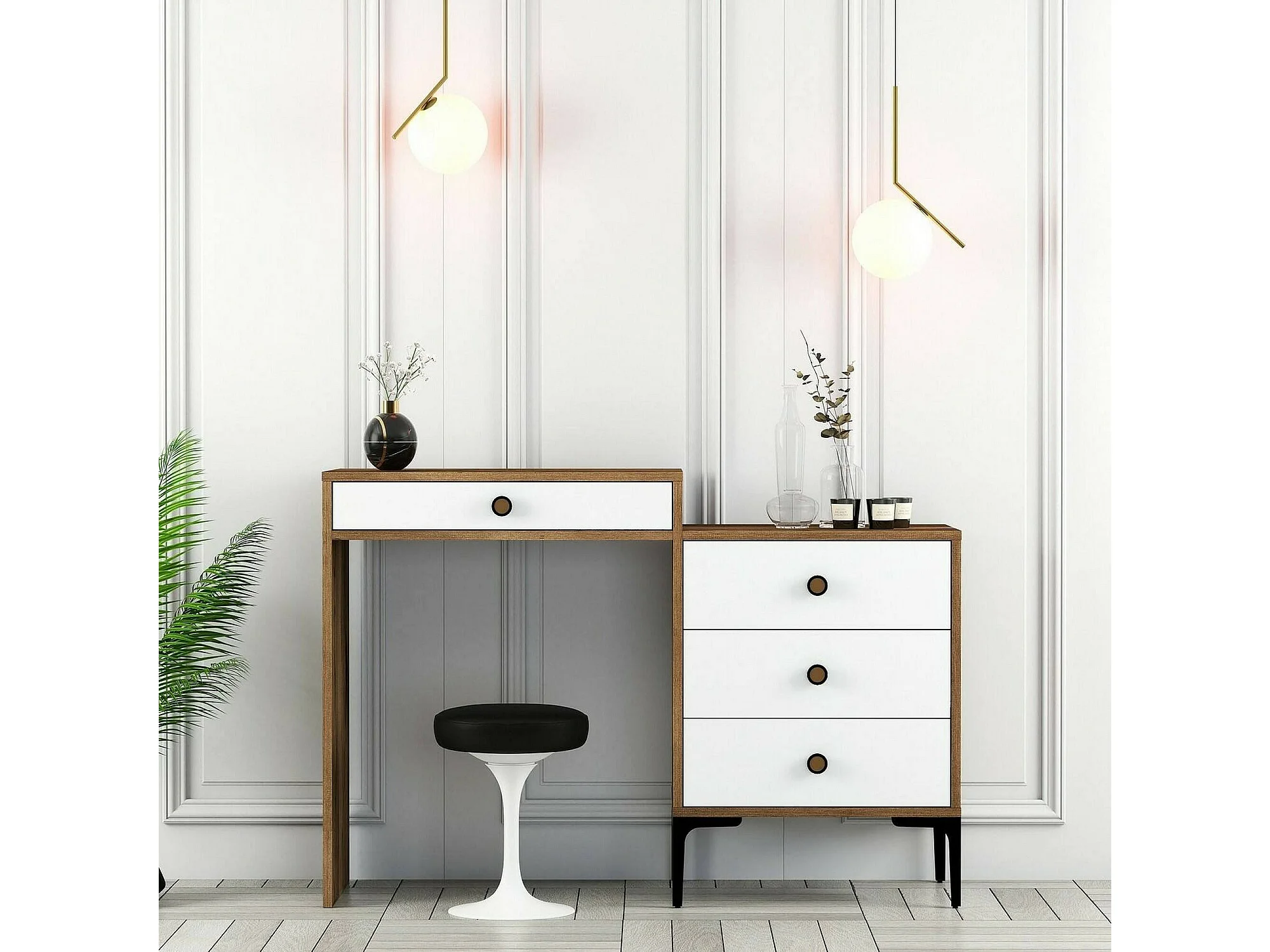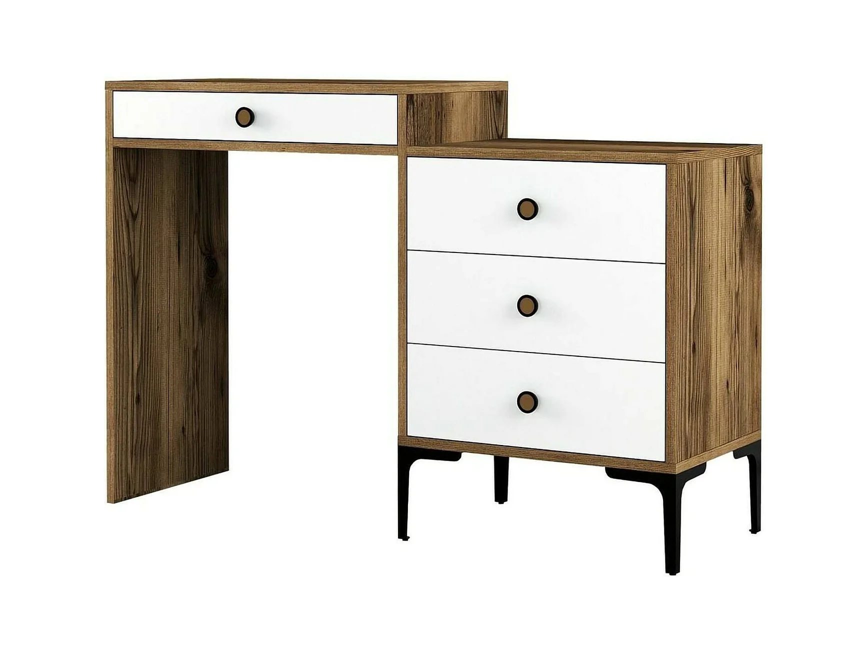 Console Lyra, Table polyvalente, Armoire de rangement, Bureau du couloir, 124x40 h85 cm, Noyer et Blanc