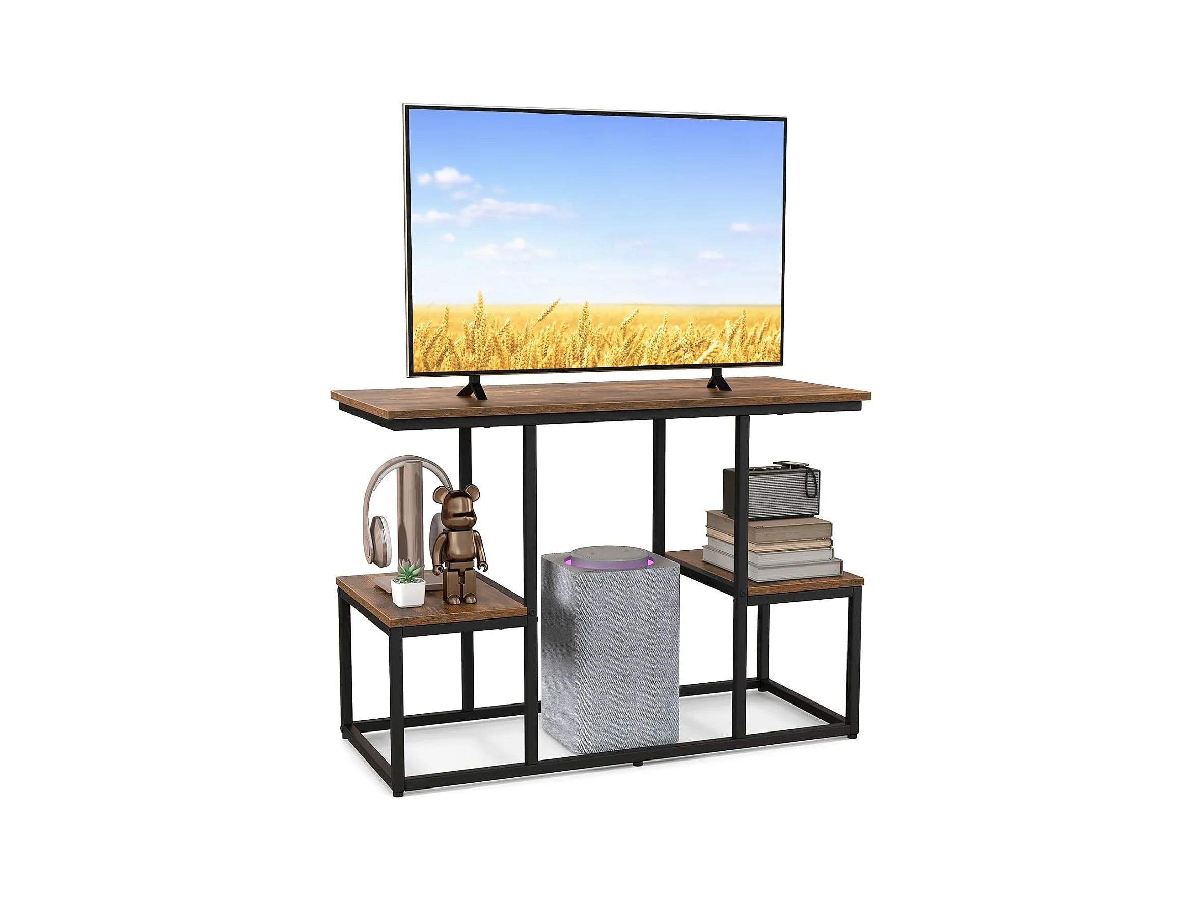Console meuble 3 étagères, meuble tv pour télé 50", marron rustique, 108 x 40 x 65 cm