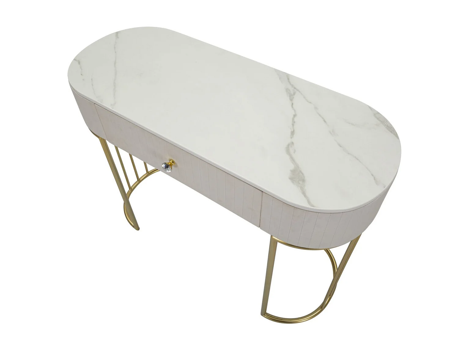 Console Design Effet Marbre "Montpellier" 100cm Crème & Or
