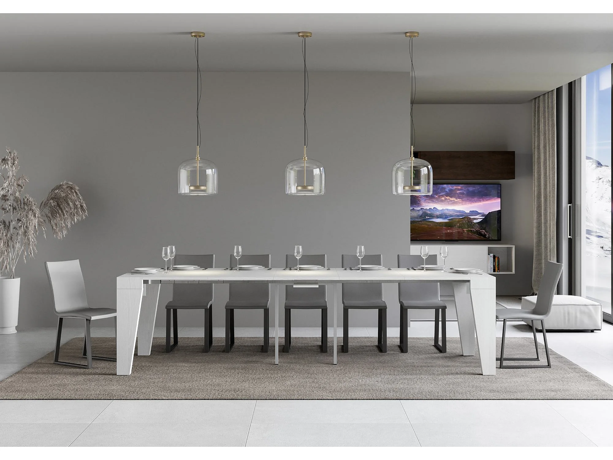 Console Extensible 90x40/300 cm Tecno frêne blanc pieds blancs
