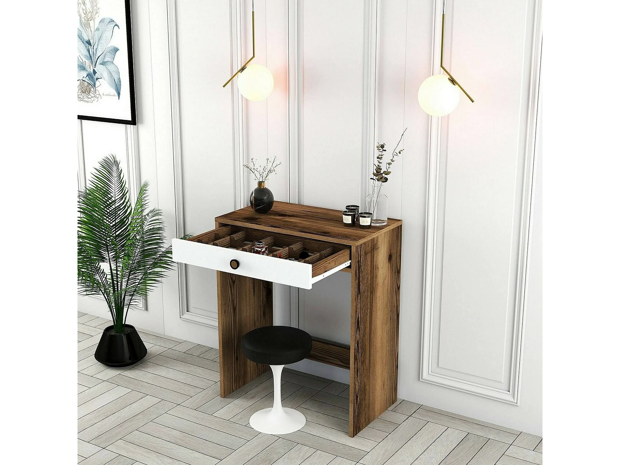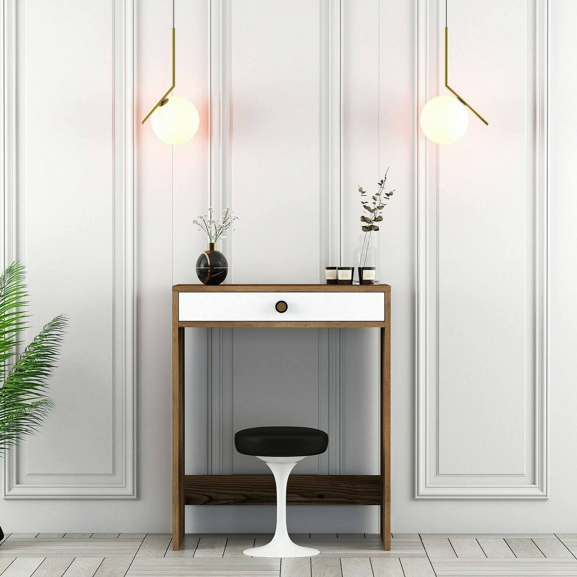 Console Solstice, Table polyvalente, Armoire de rangement, Bureau du couloir, 70x85 h40 cm, Noyer et Blanc
