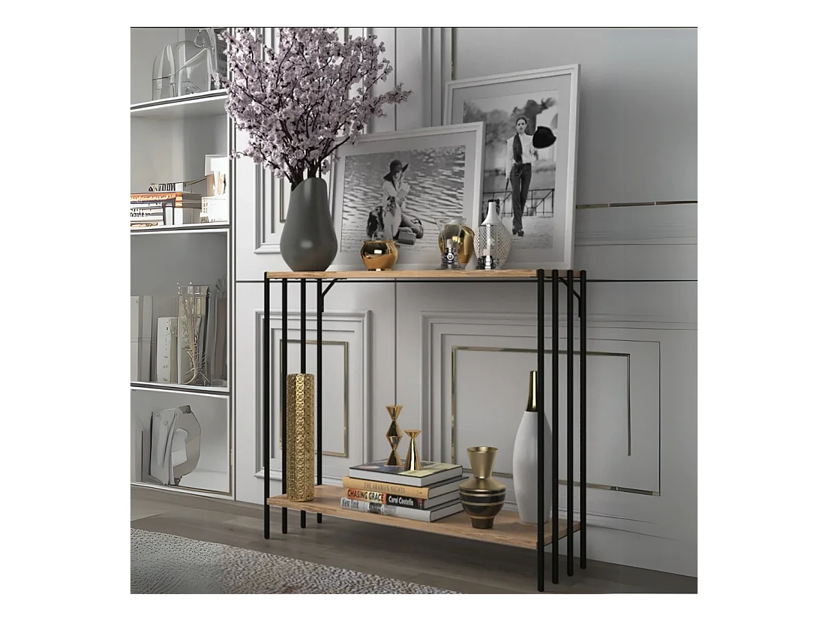 Table d'appoint en marbre et métal - Blanc, noir et doré - NAYELI