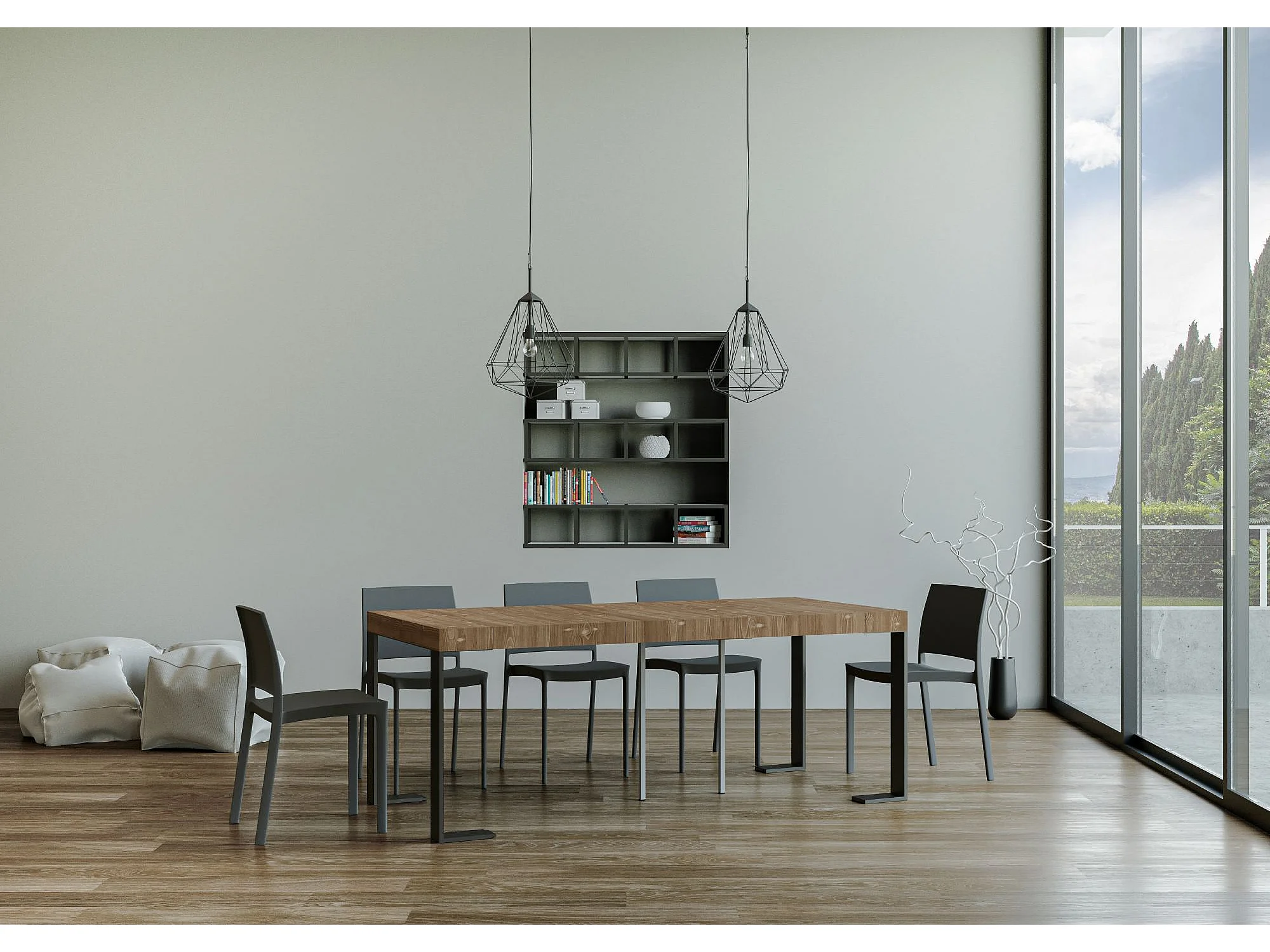 Console Extensible 90x40/190 cm Elettra Small Sapin Teinté cadre Anthracite
