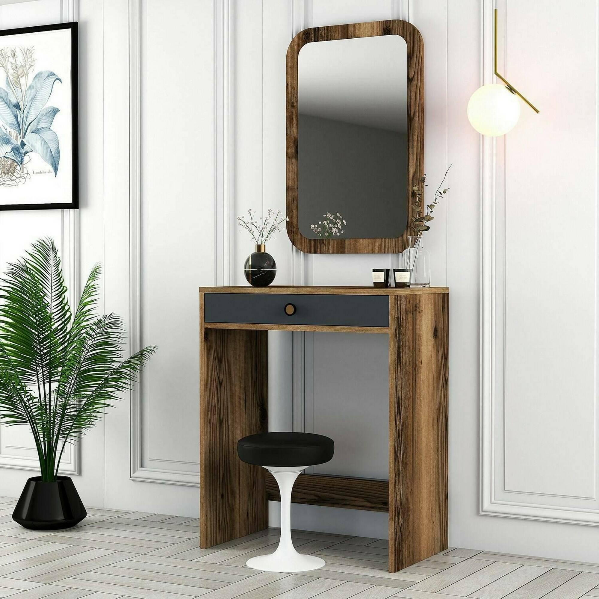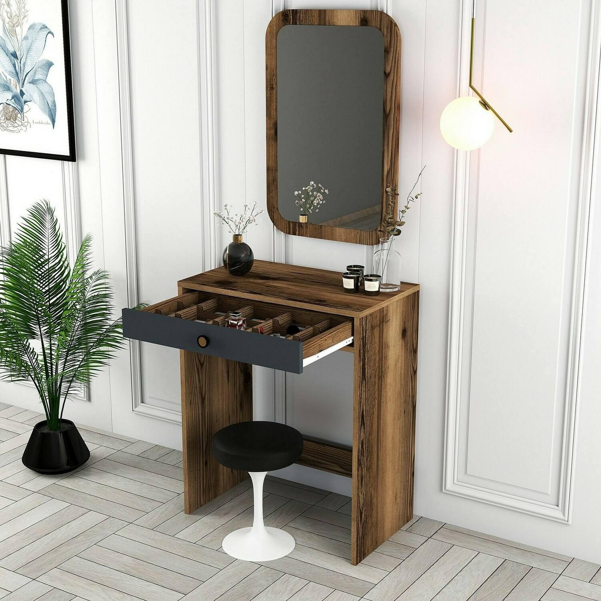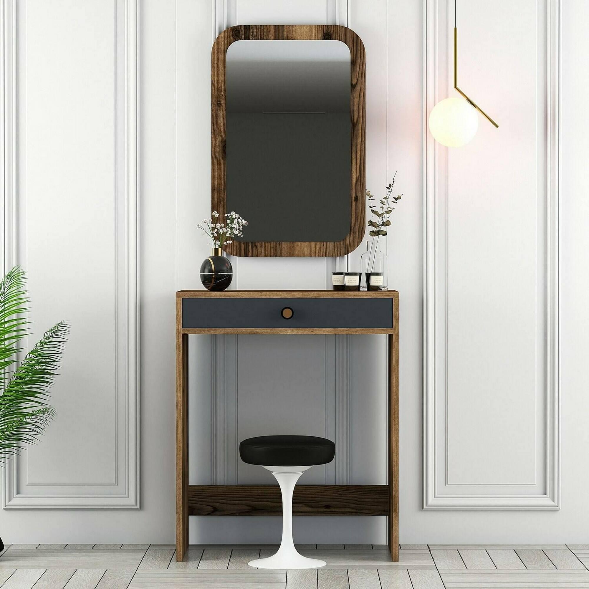 Console Ursa, Table polyvalente, Armoire de rangement, Bureau du couloir, 70x85 h40 cm, Noyer et Anthracite
