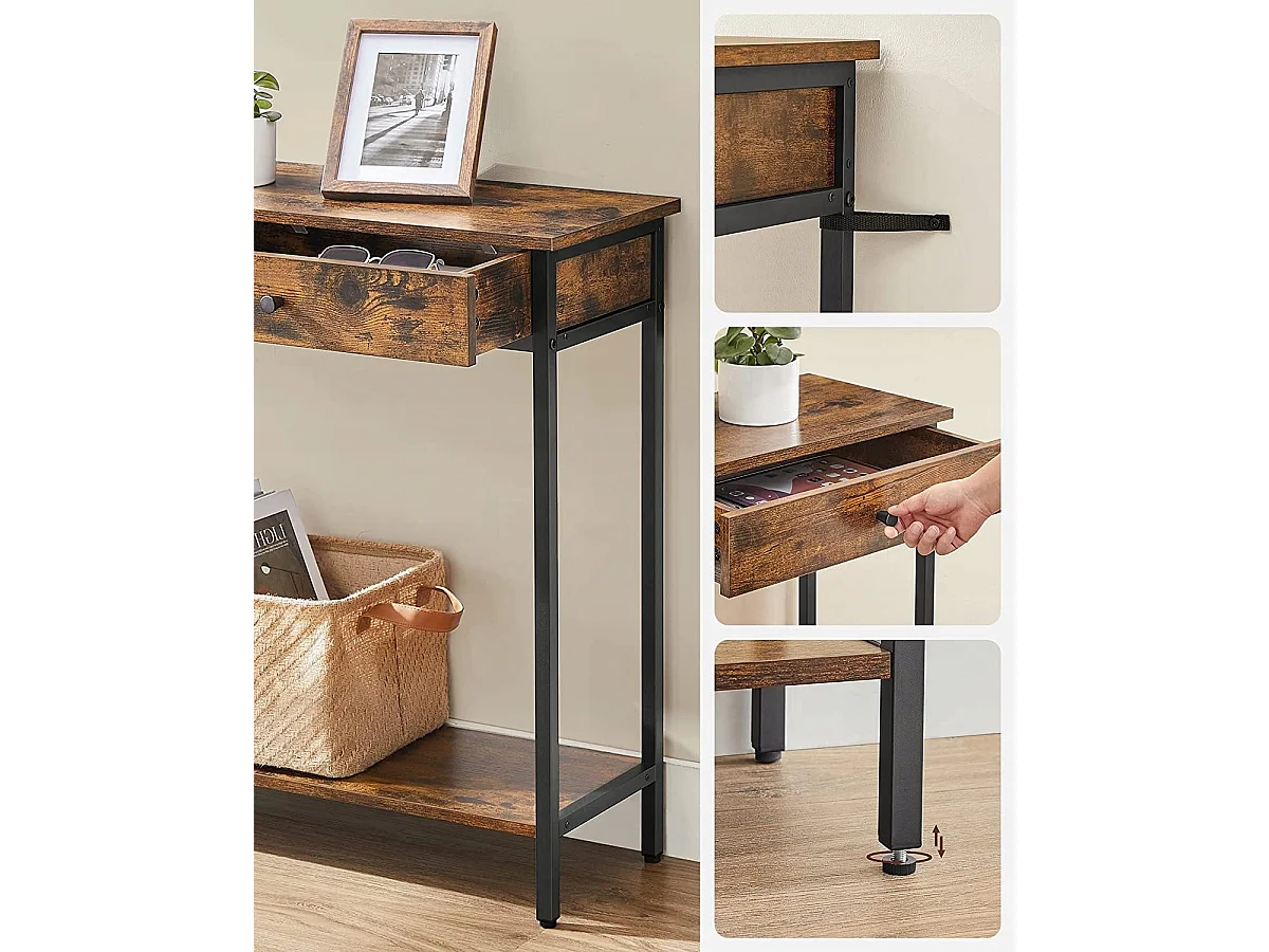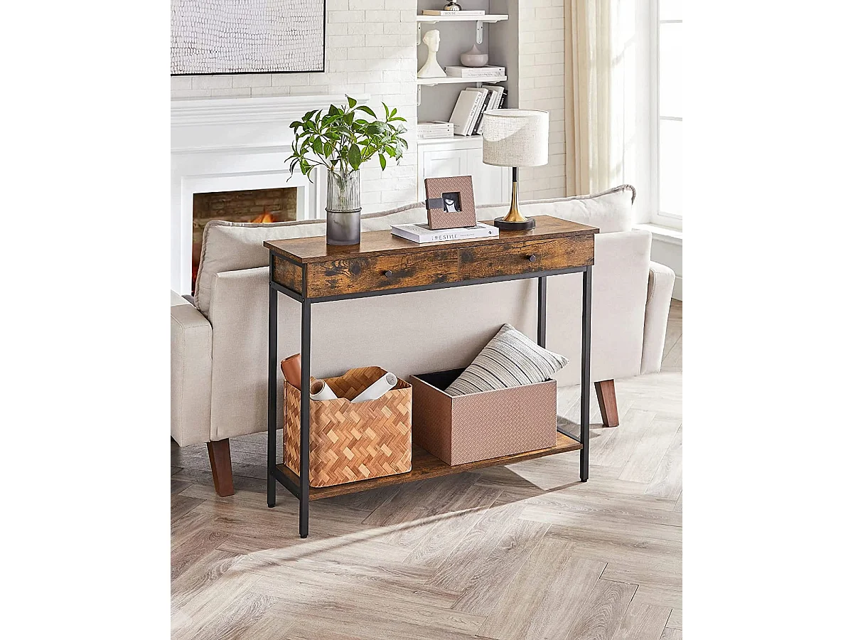 Console Valora style loft rustique marron avec tiroirs