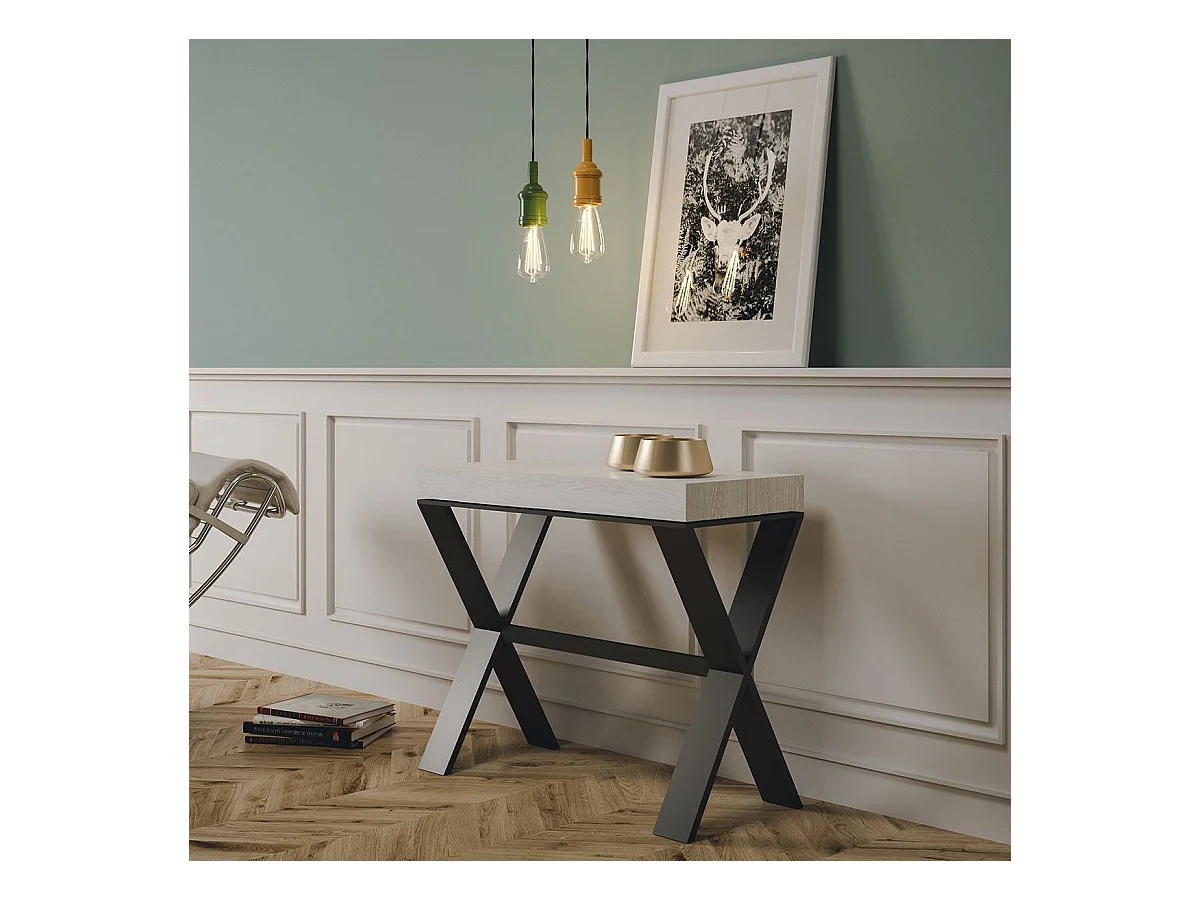 Console extensible 90x40/300 cm Krack frêne blanc pieds anthracite
