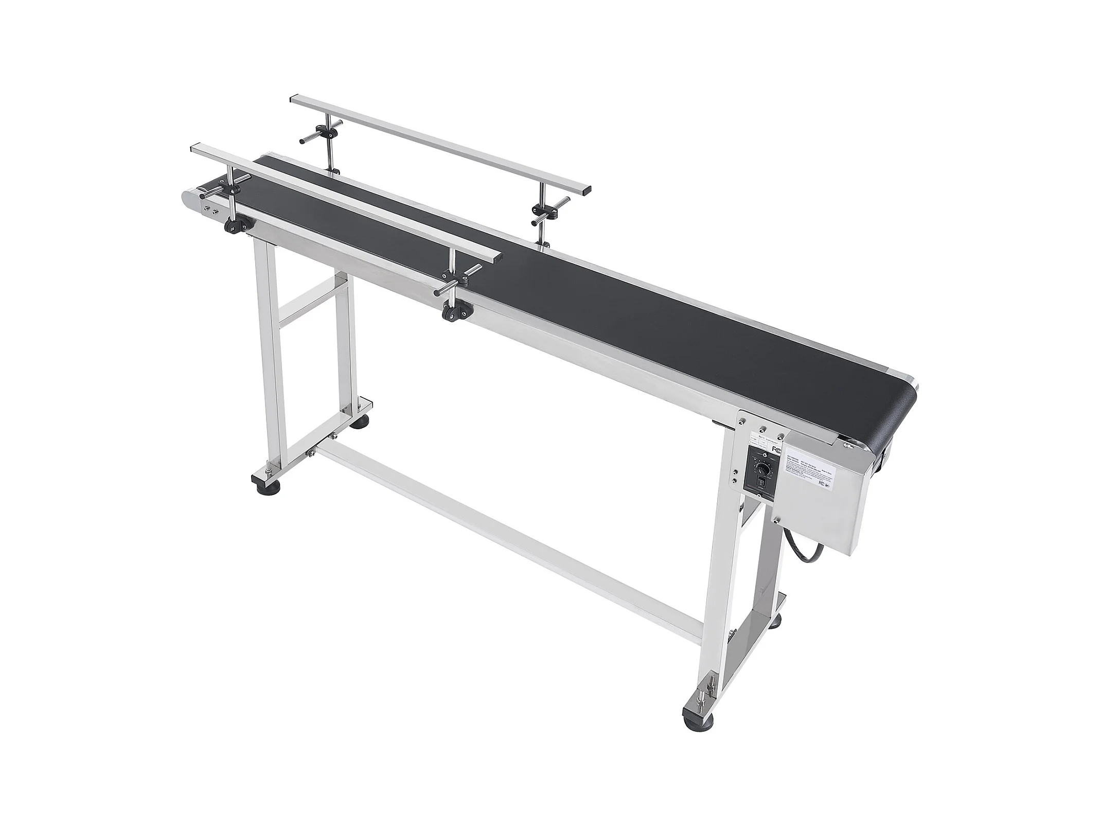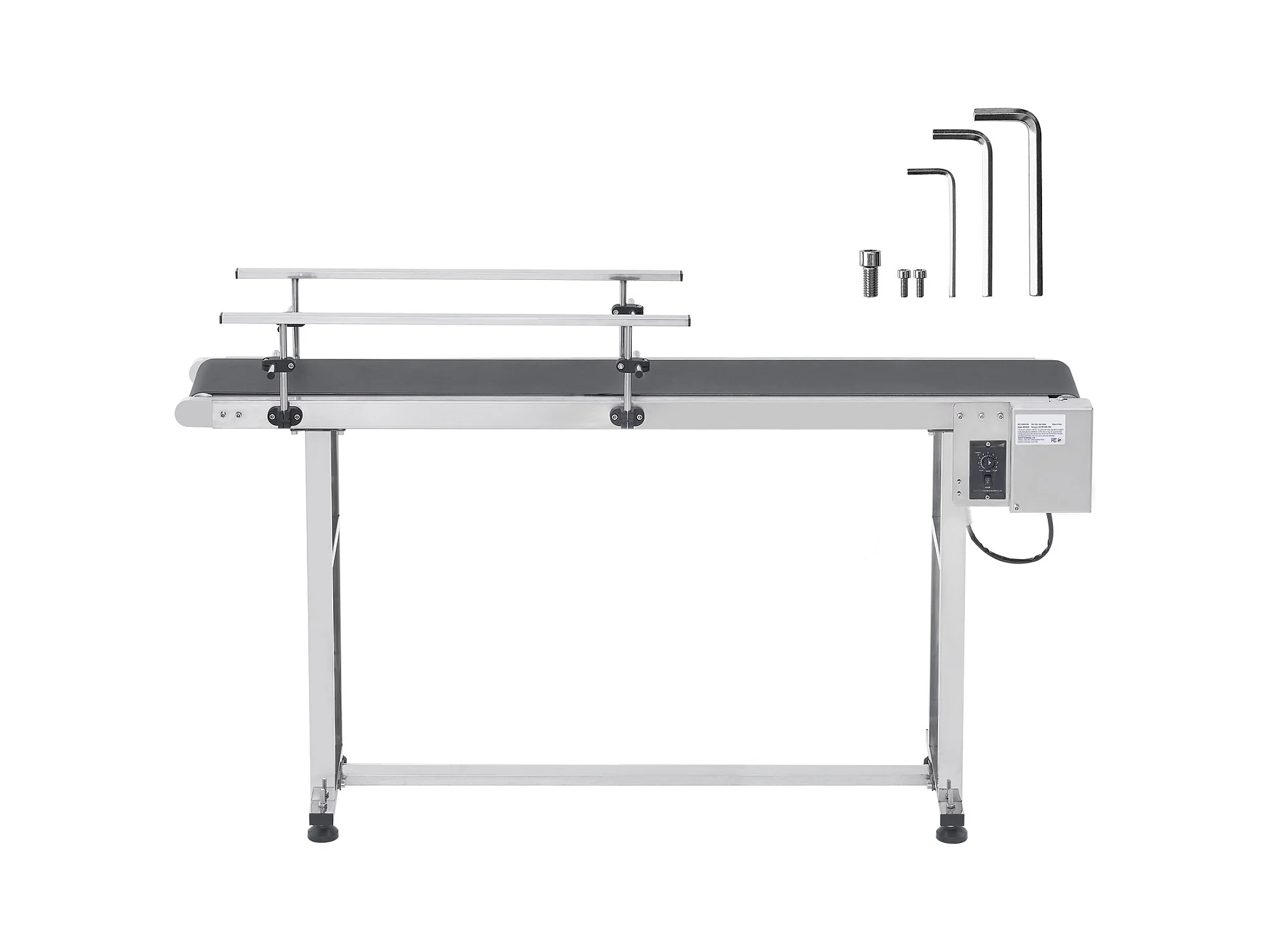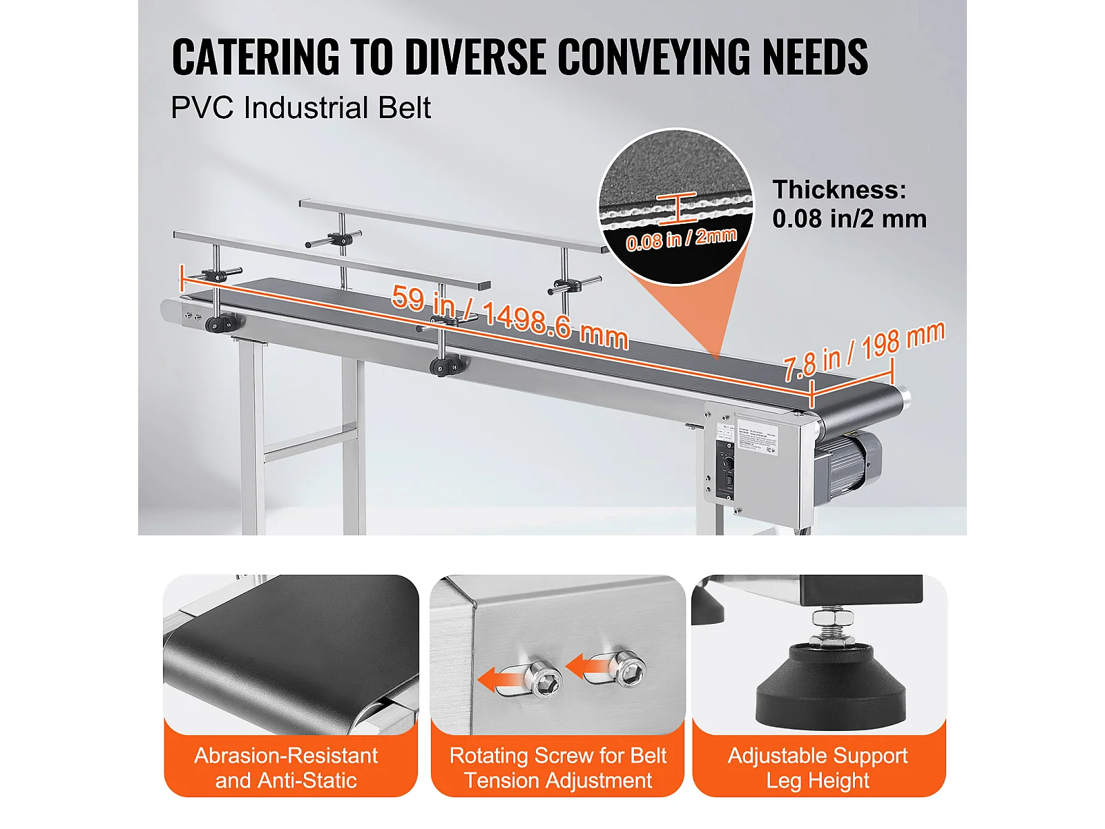 Convoyeur à Bande SucceBuy Convoyeur à Bande 150 x 20 cm, Garde-corps Double en Acier Inoxydable et PVC