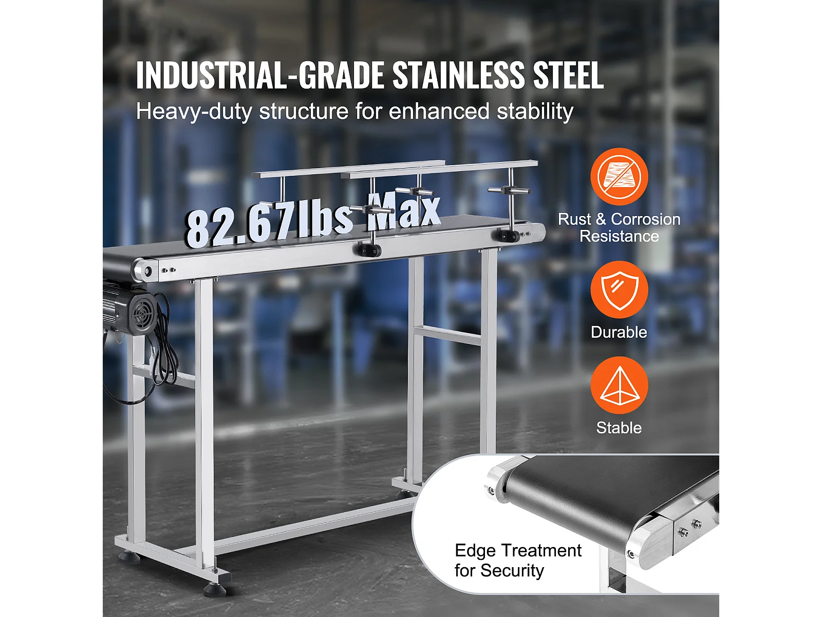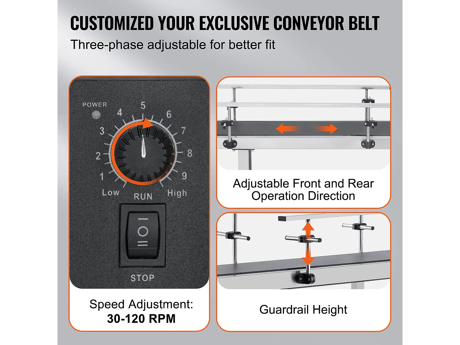 Convoyeur à Bande SucceBuy Convoyeur à Bande 150 x 40 cm, Garde-corps Double en Acier Inoxydable et PVC