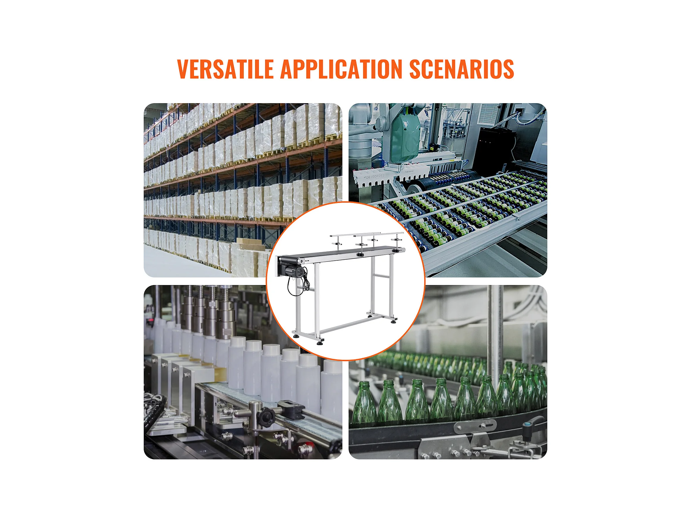 Convoyeur à Bande SucceBuy Convoyeur à Bande 180 x 20 cm, Garde-corps Double en Acier Inoxydable et PVC