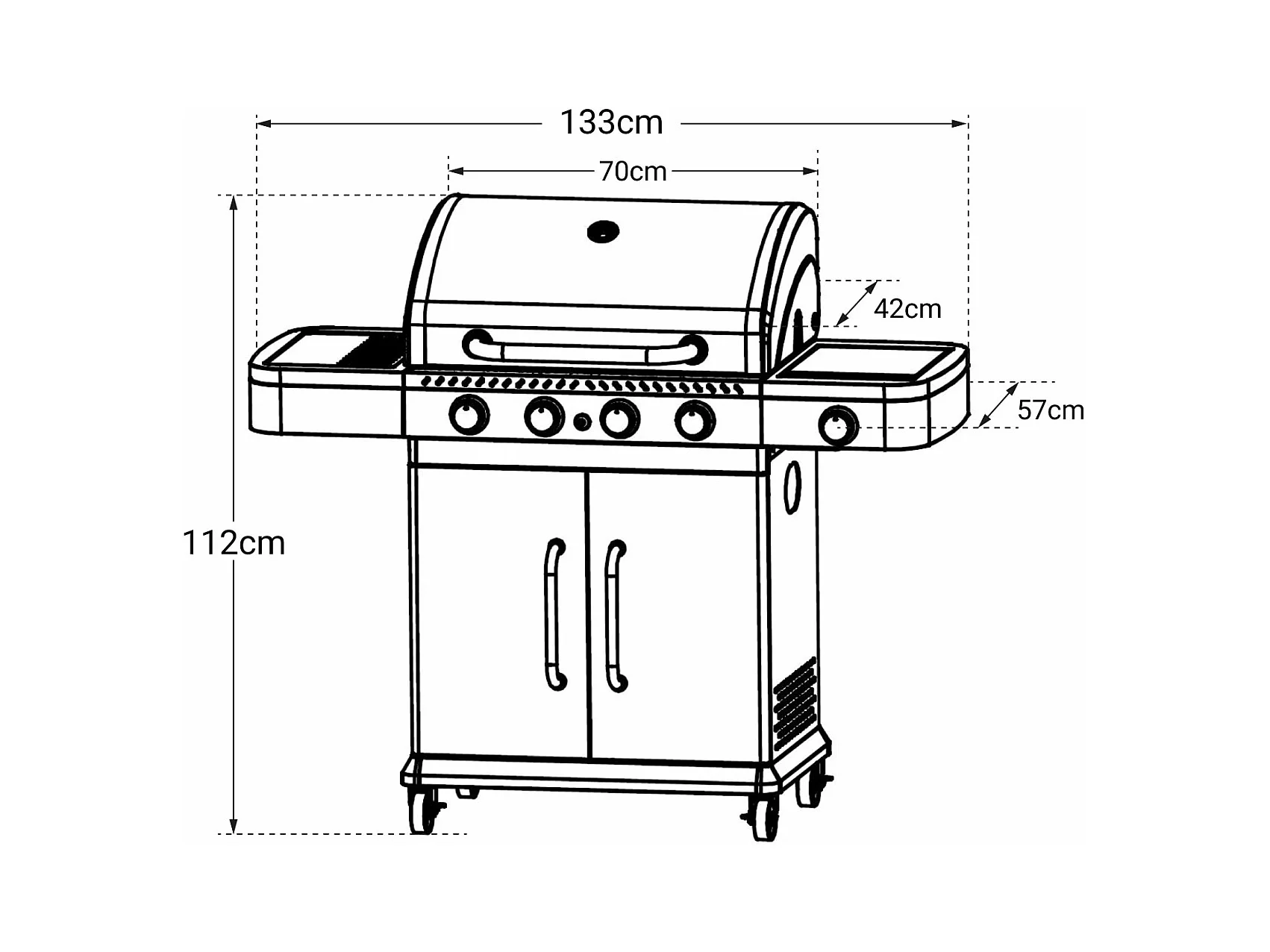 Barbecue au gaz FIDGI 4 avec thermomètre - 4 brûleurs + réchaud 14,5kW - COOK'IN GARDEN