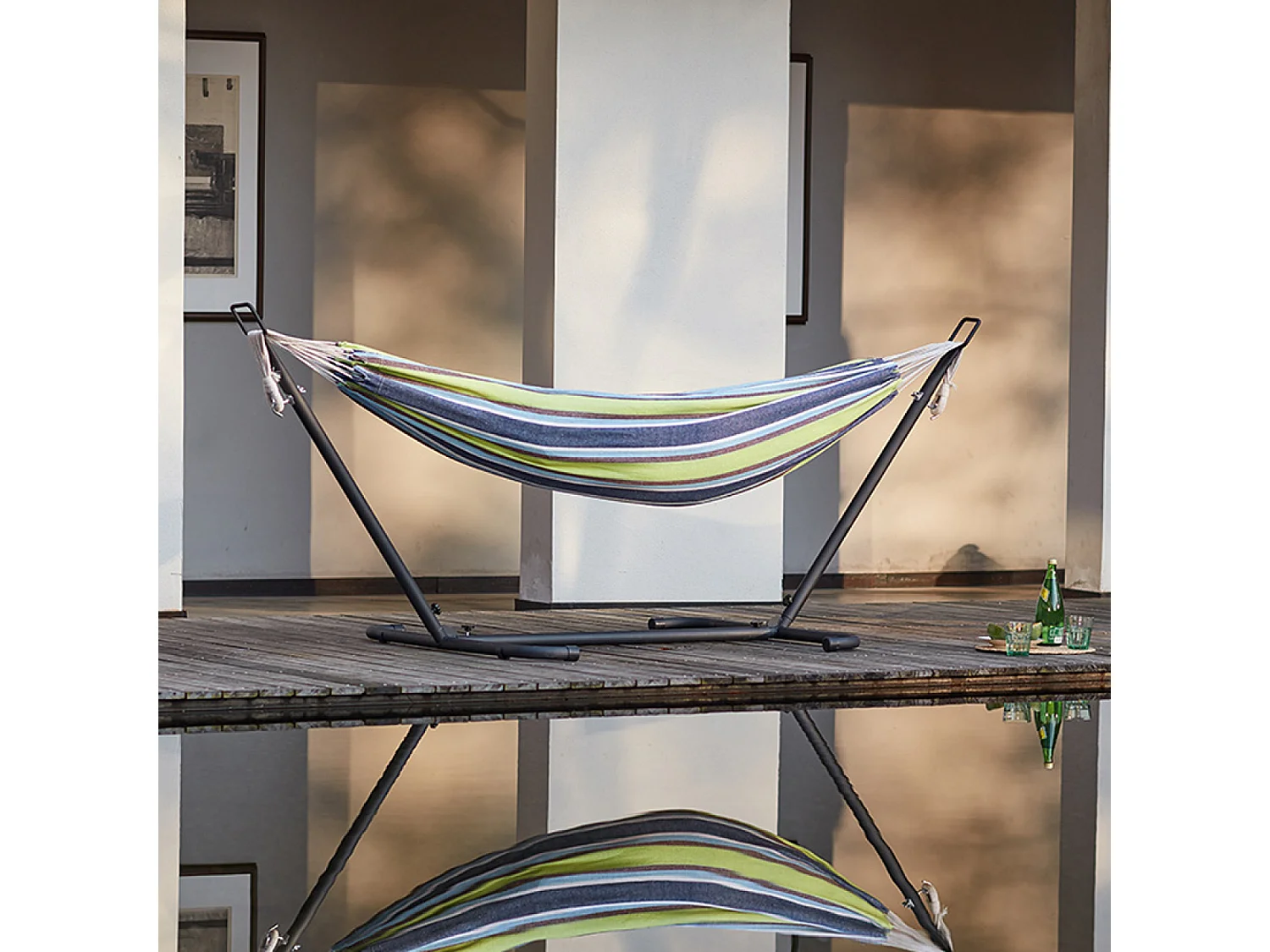 Hamac sur pied 2,6 m avec toile en polyester bleu et vert COPACABANA