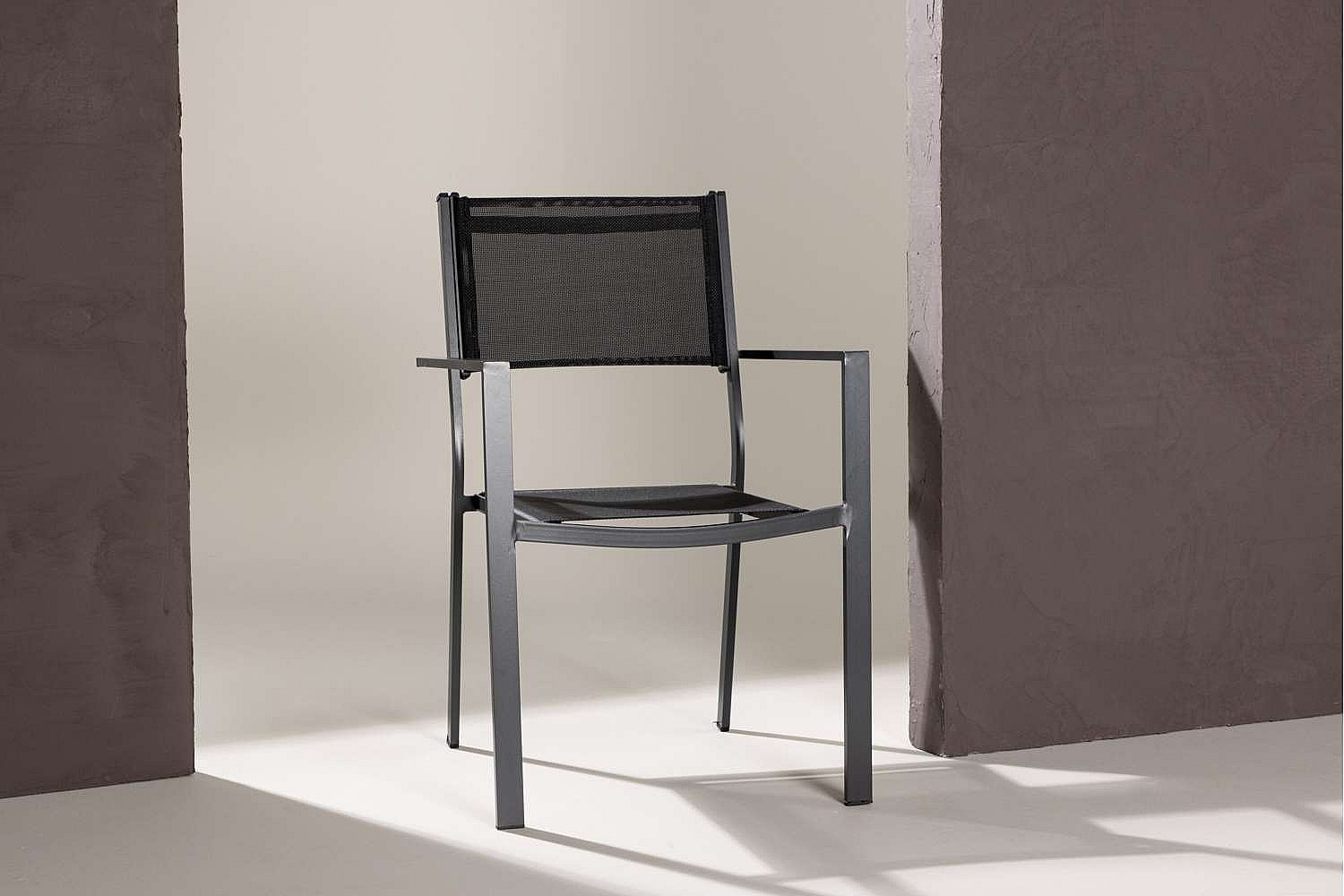Lindos Chaise de jardin avec accoudoirs empilable, noir.