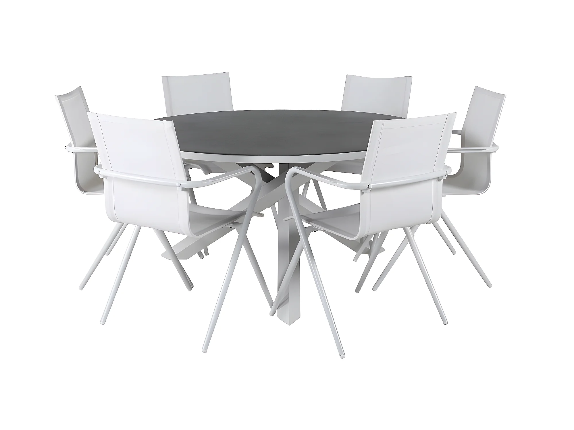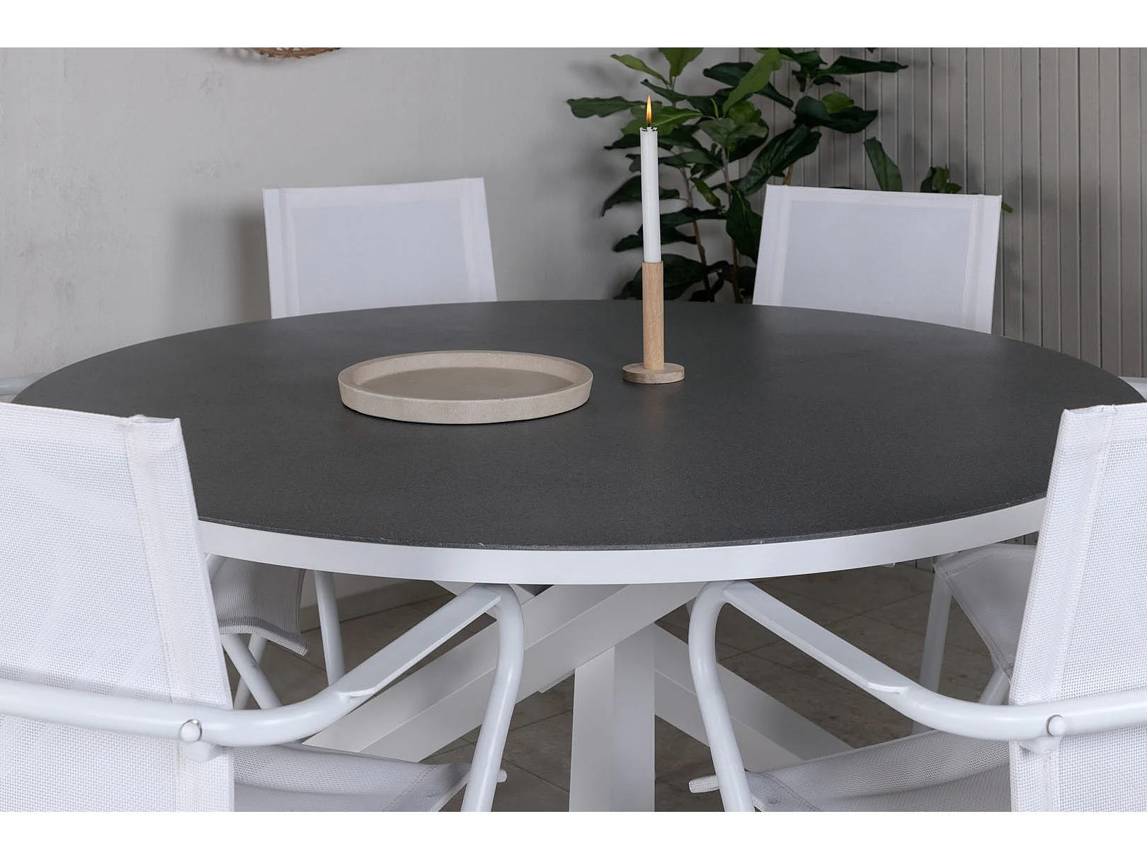 Copacabana Ensemble table et chaises de jardin, table Ø140cm et 6 chaises Alina, blanc, gris, crème.