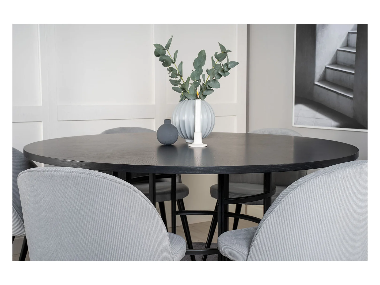 Copenhagen ensemble table, table marron et 6 Velvet chaises Velours côtelé grisclair, noir.