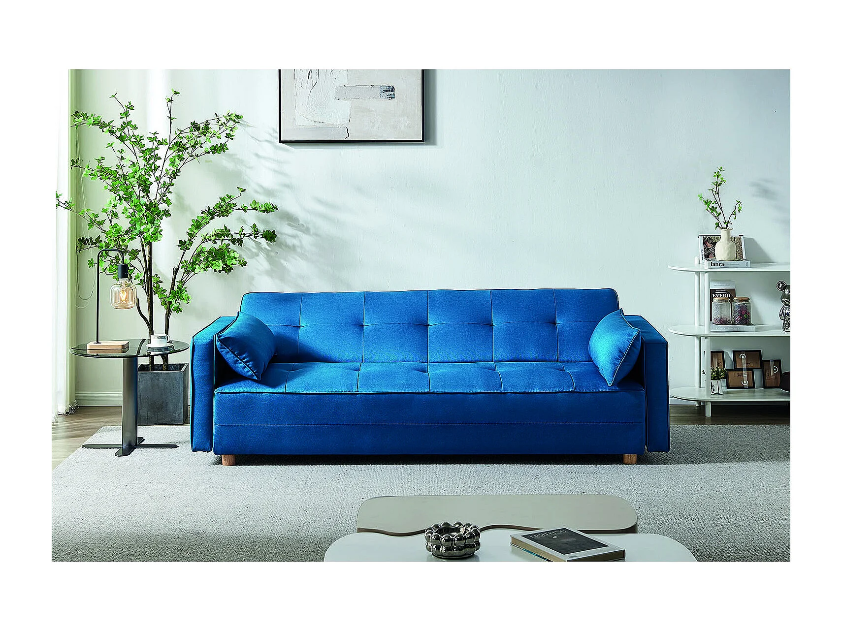 Canapé scandinave convertible 3 places en tissu bleu canard COPENHAGUE