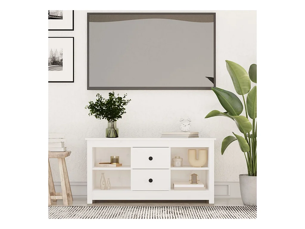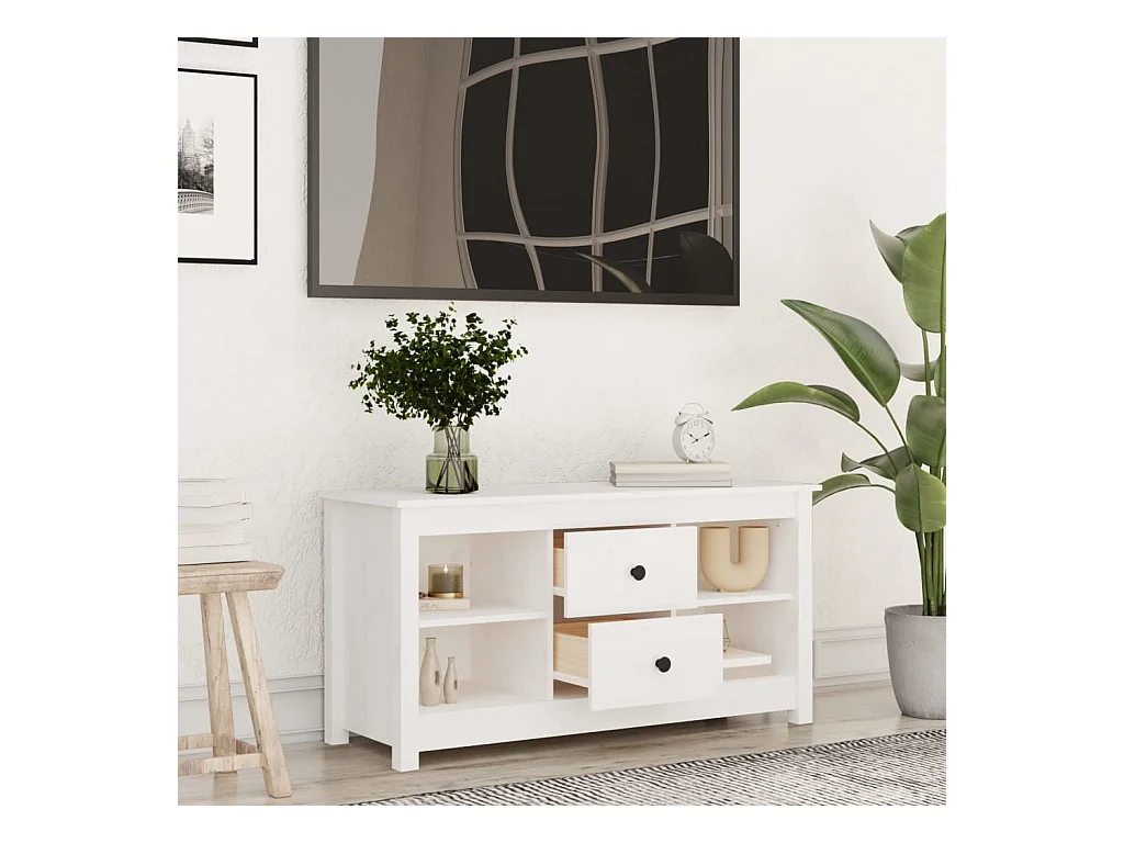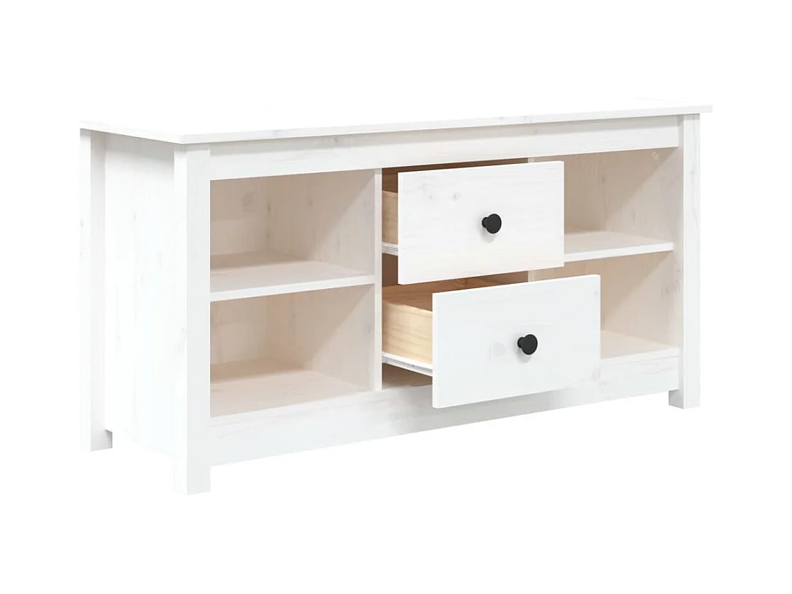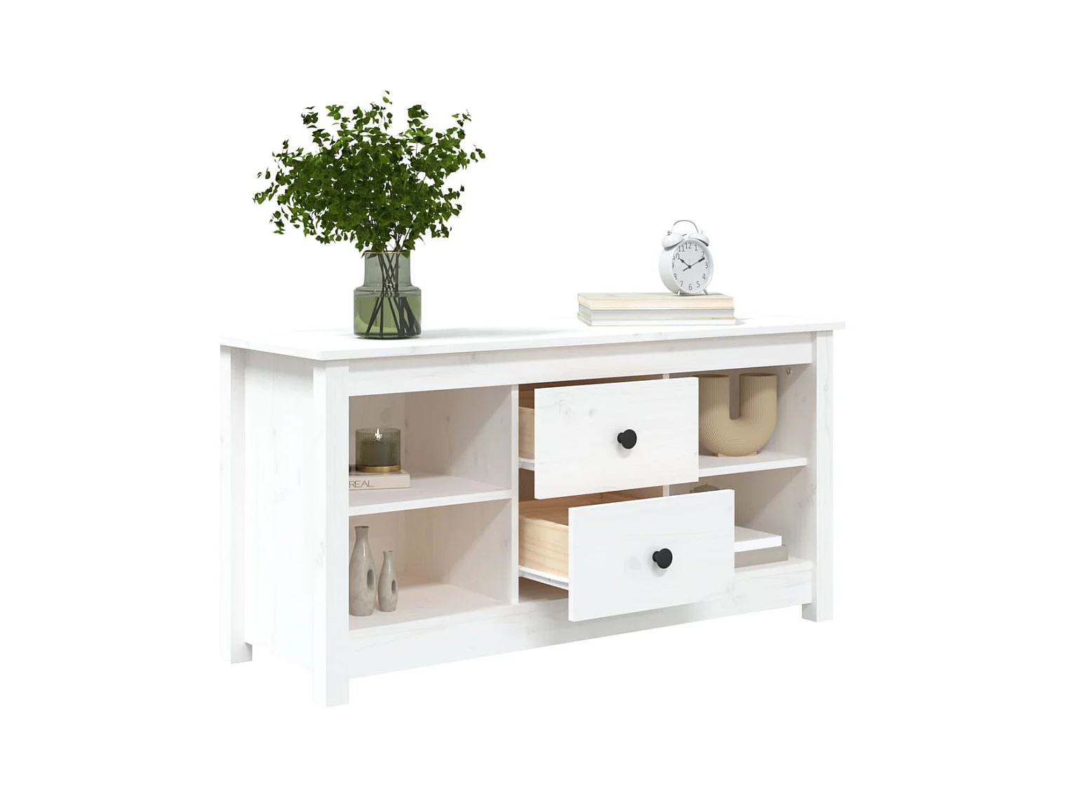 Cordele Meuble TV Blanc 103x36,5x52 cm Bois de pin massif