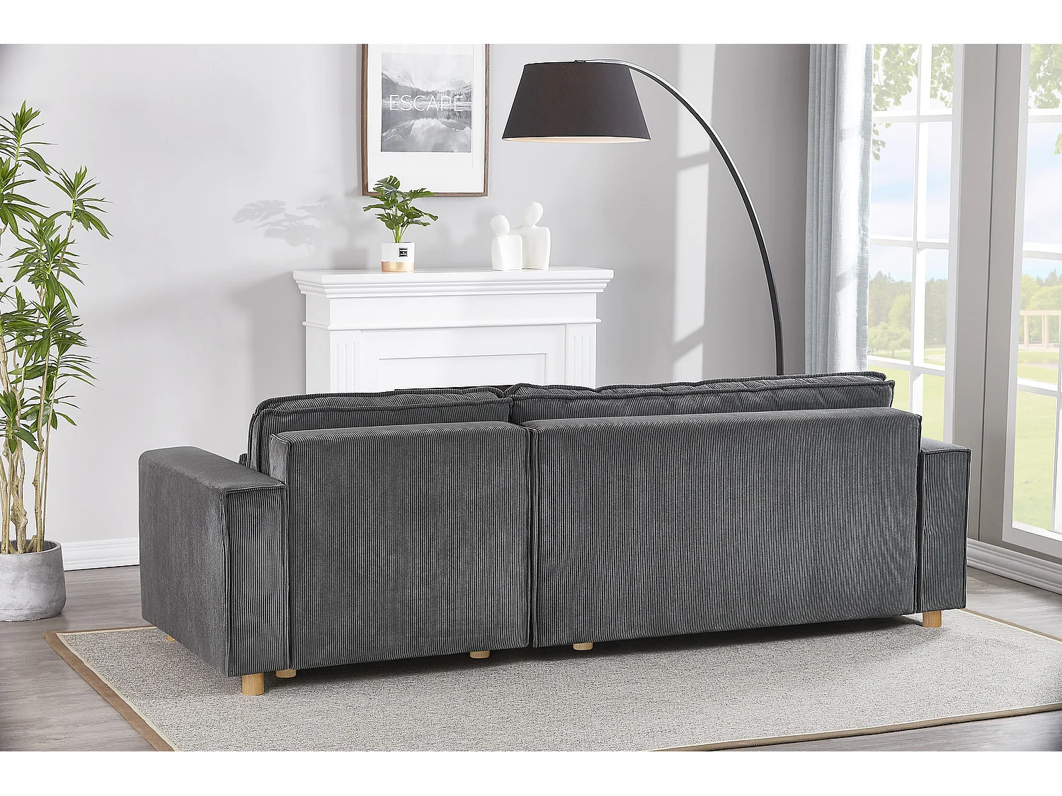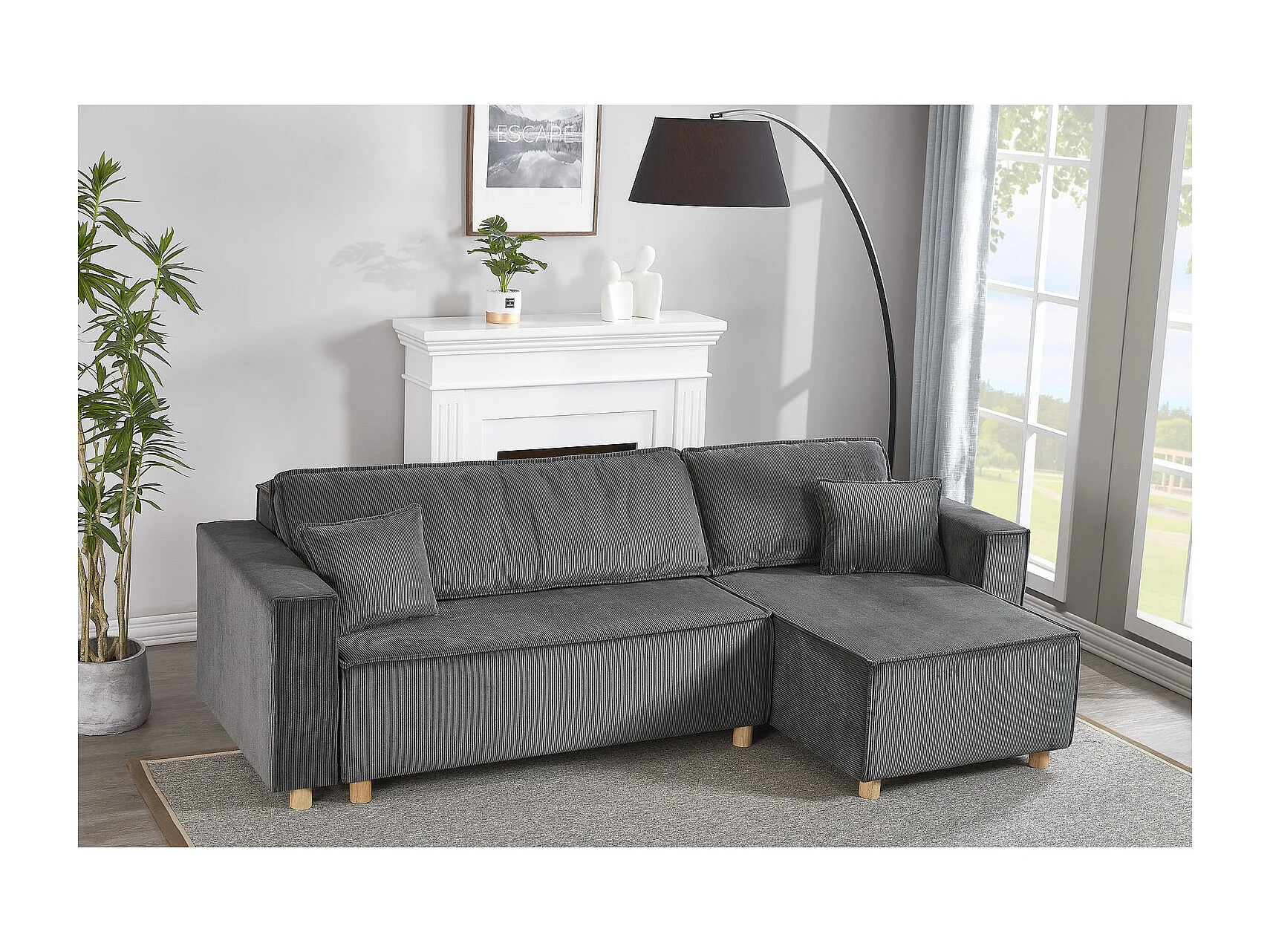 Canapé convertible d'angle réversible 4 places velours côtelé gris COSY