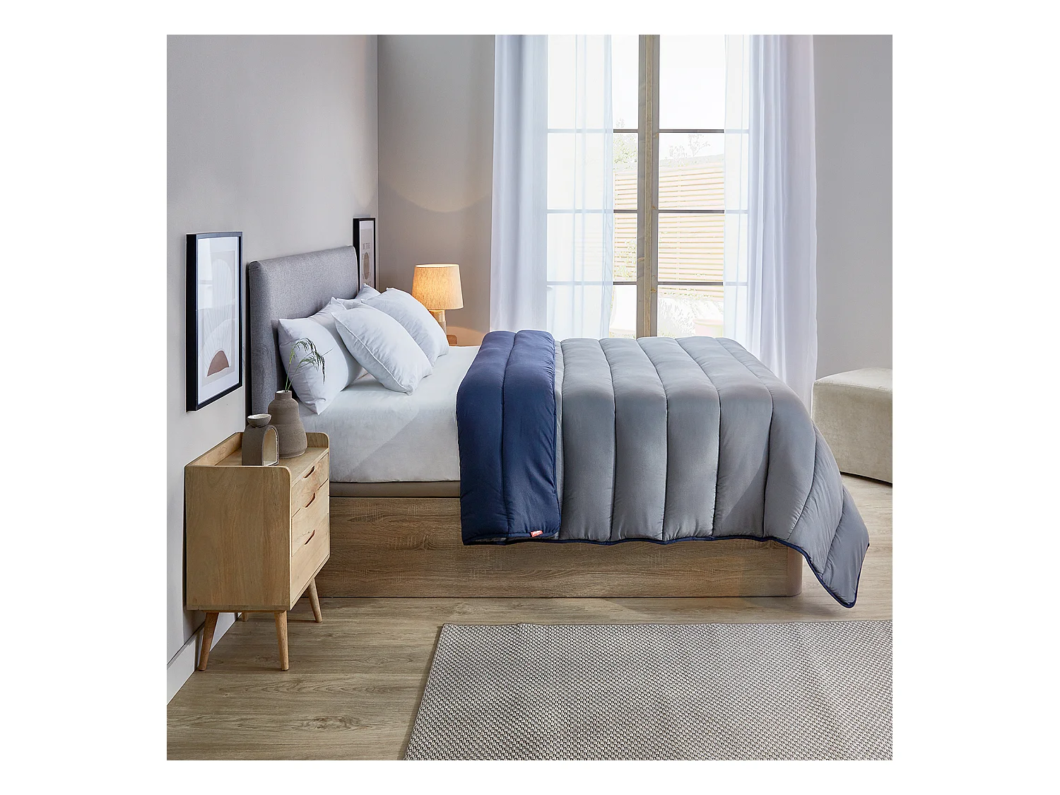 Couette fibre bicolore 400 gr pour l'hiver Gris