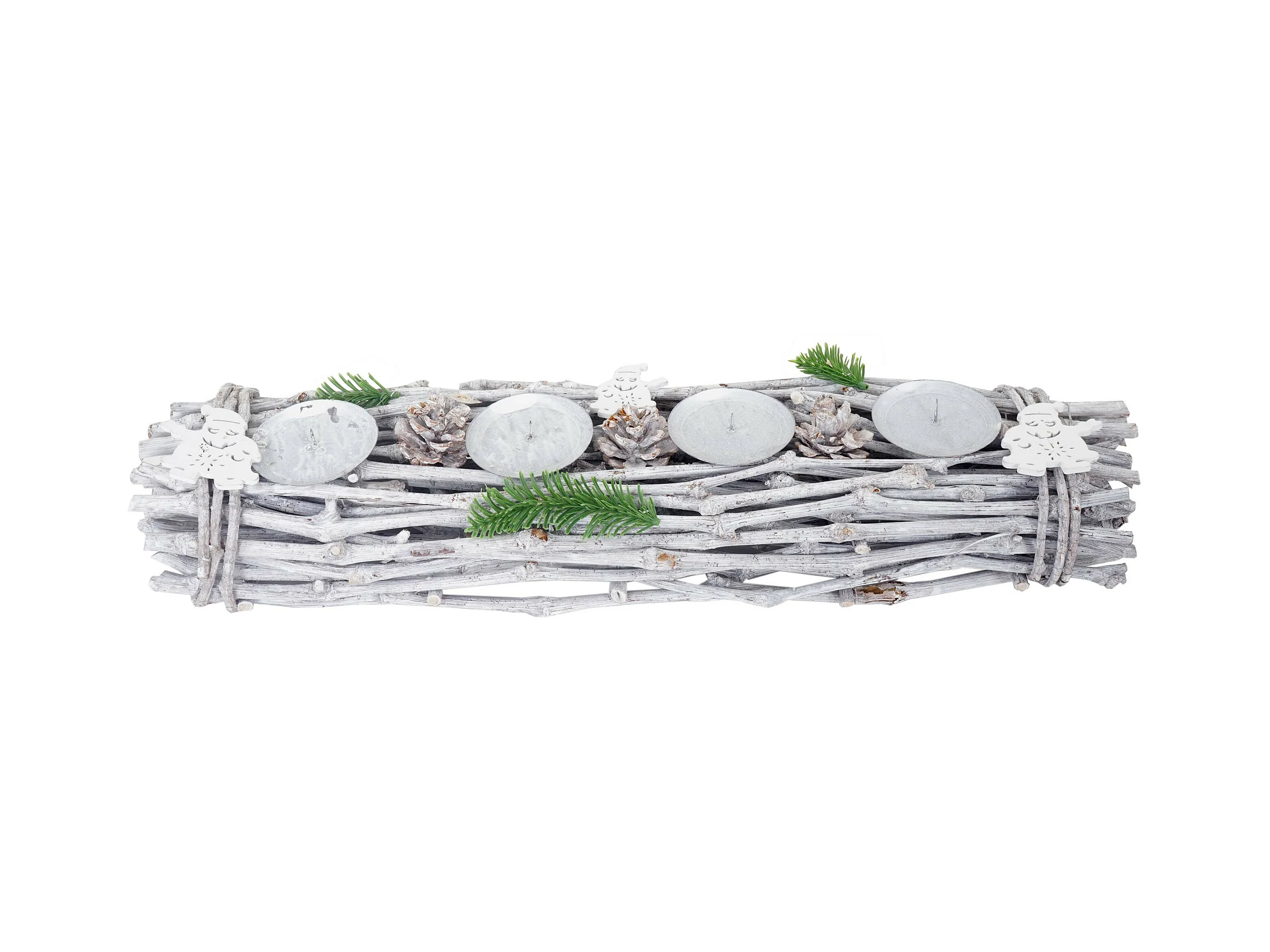 Couronne de l'Avent oblongue bougies bois rouge, Couronne de l'Avent, oblongue, décoration de Noël, composition de l'Avent, bois, 60x16x9cm blanc/gris