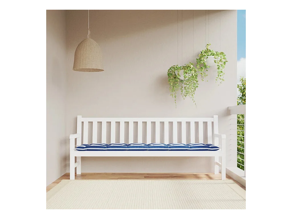 Coussin de banc de jardin rayures bleues et blanches 200x50x7cm