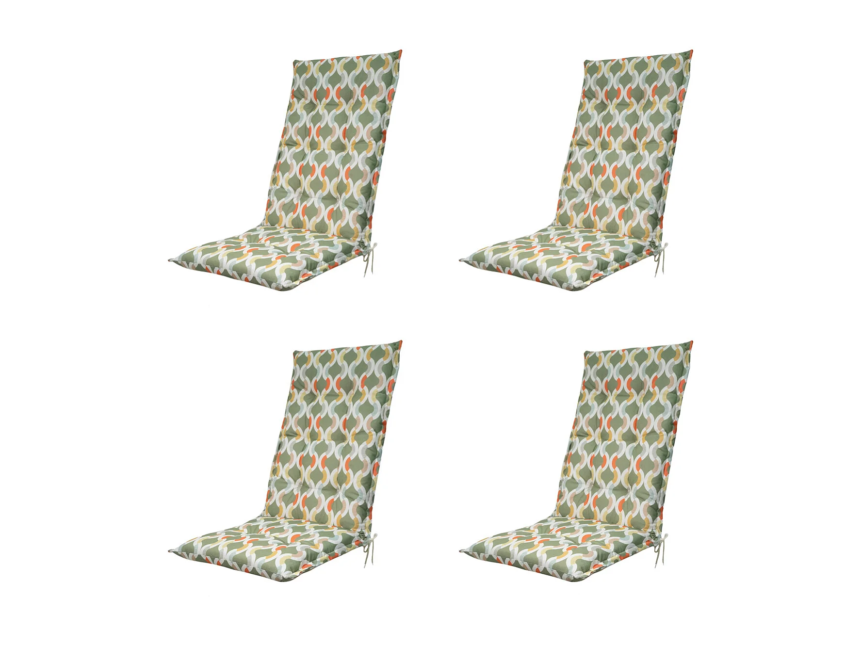 Coussin de chaise de jardin dossier haut Trivia vert - Environ 123 x 50 cm - Lot de 4