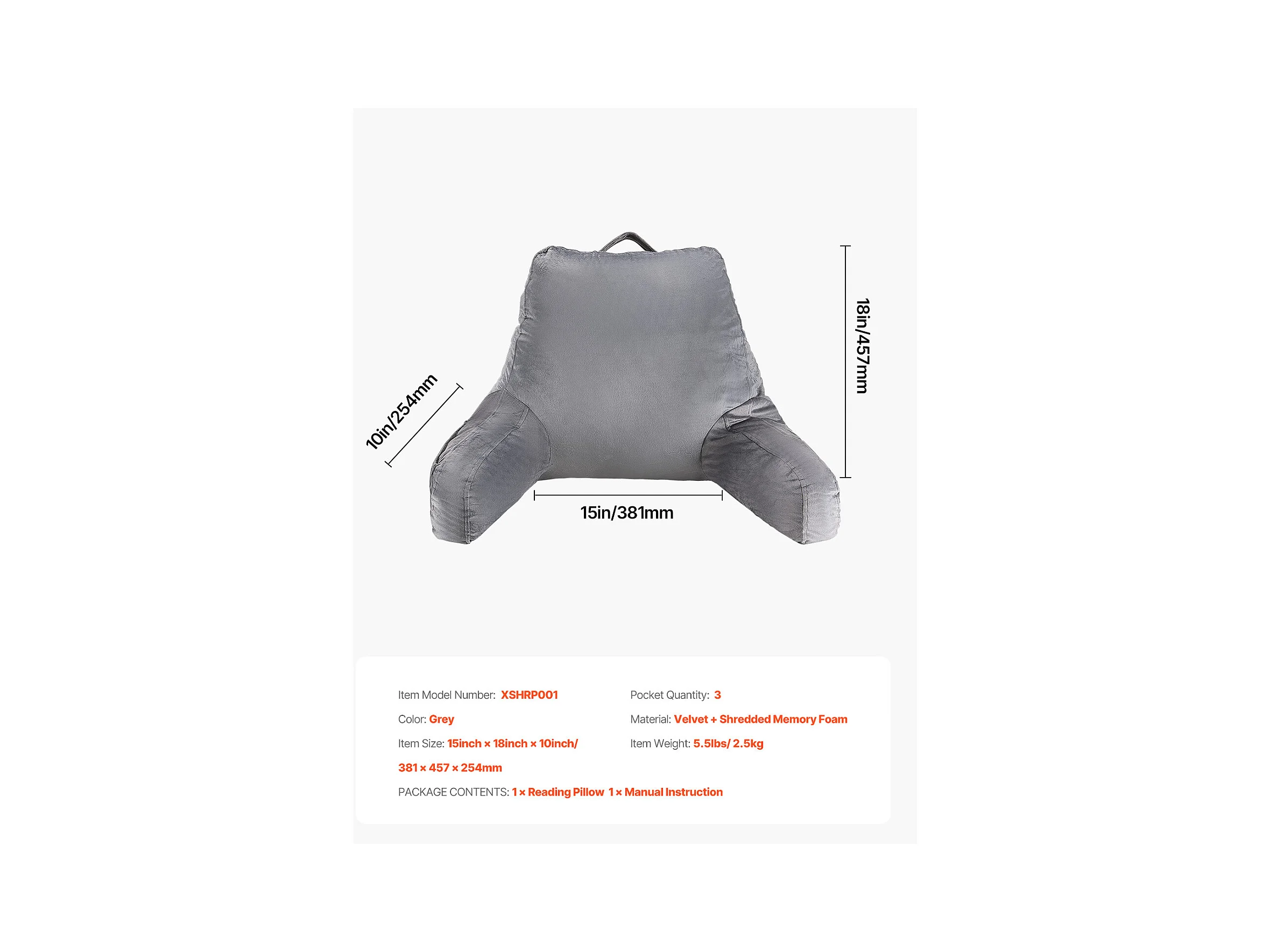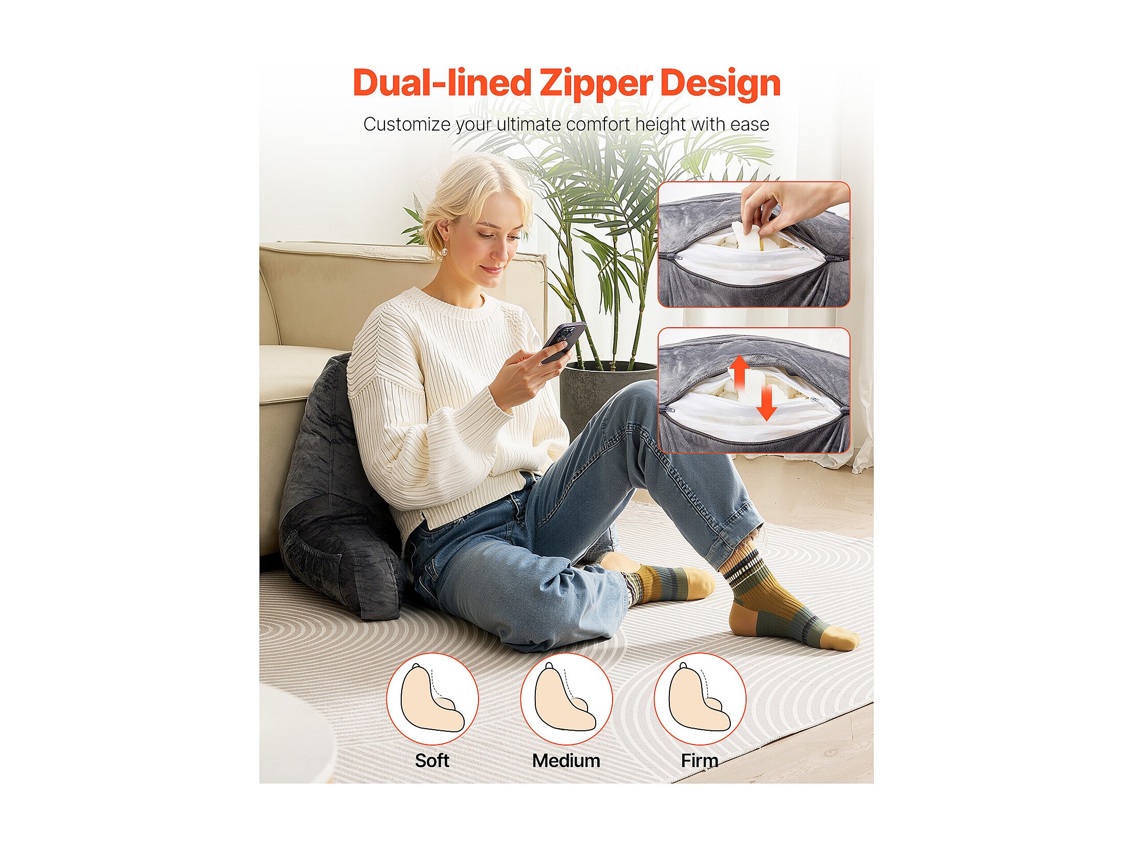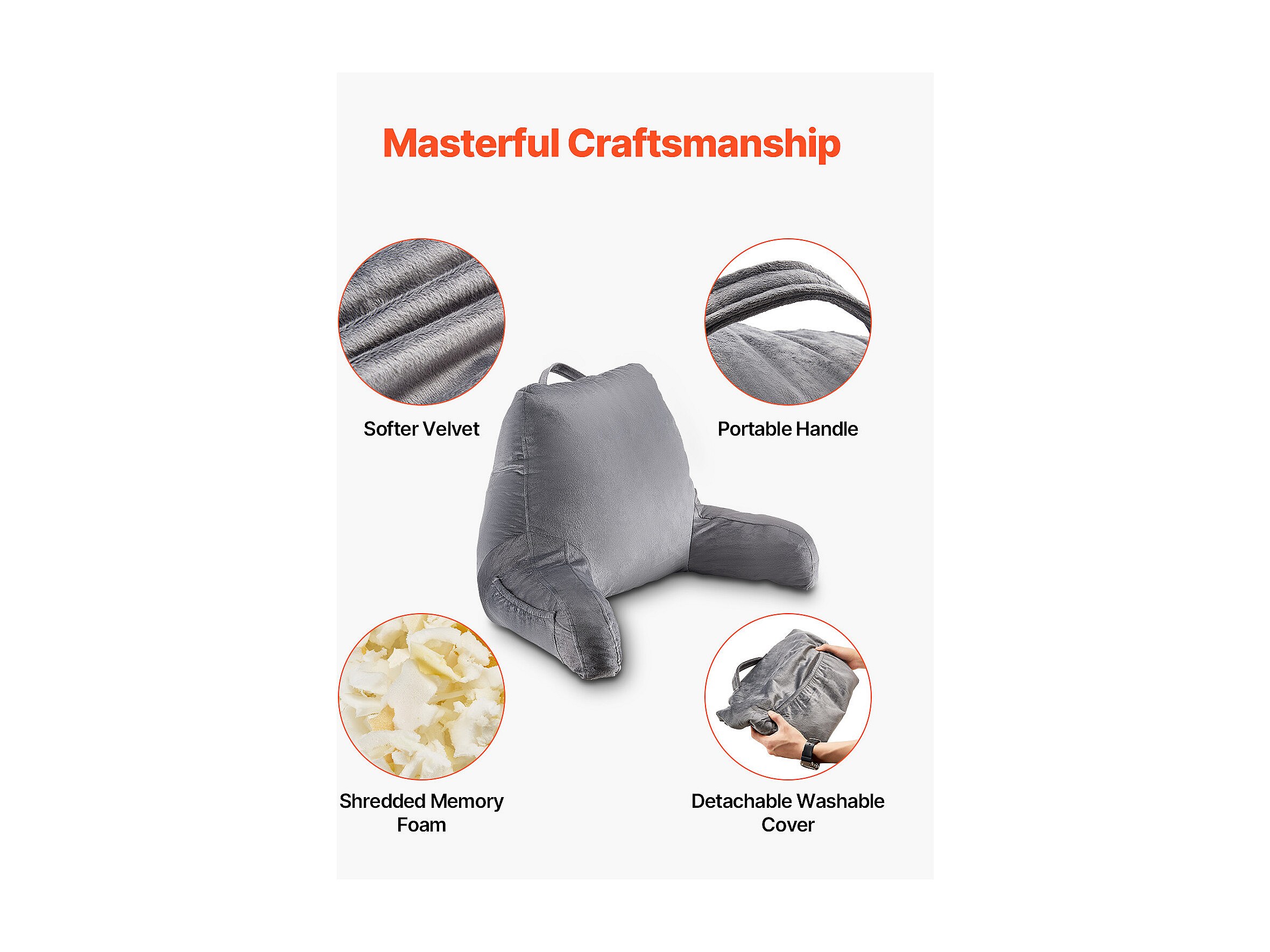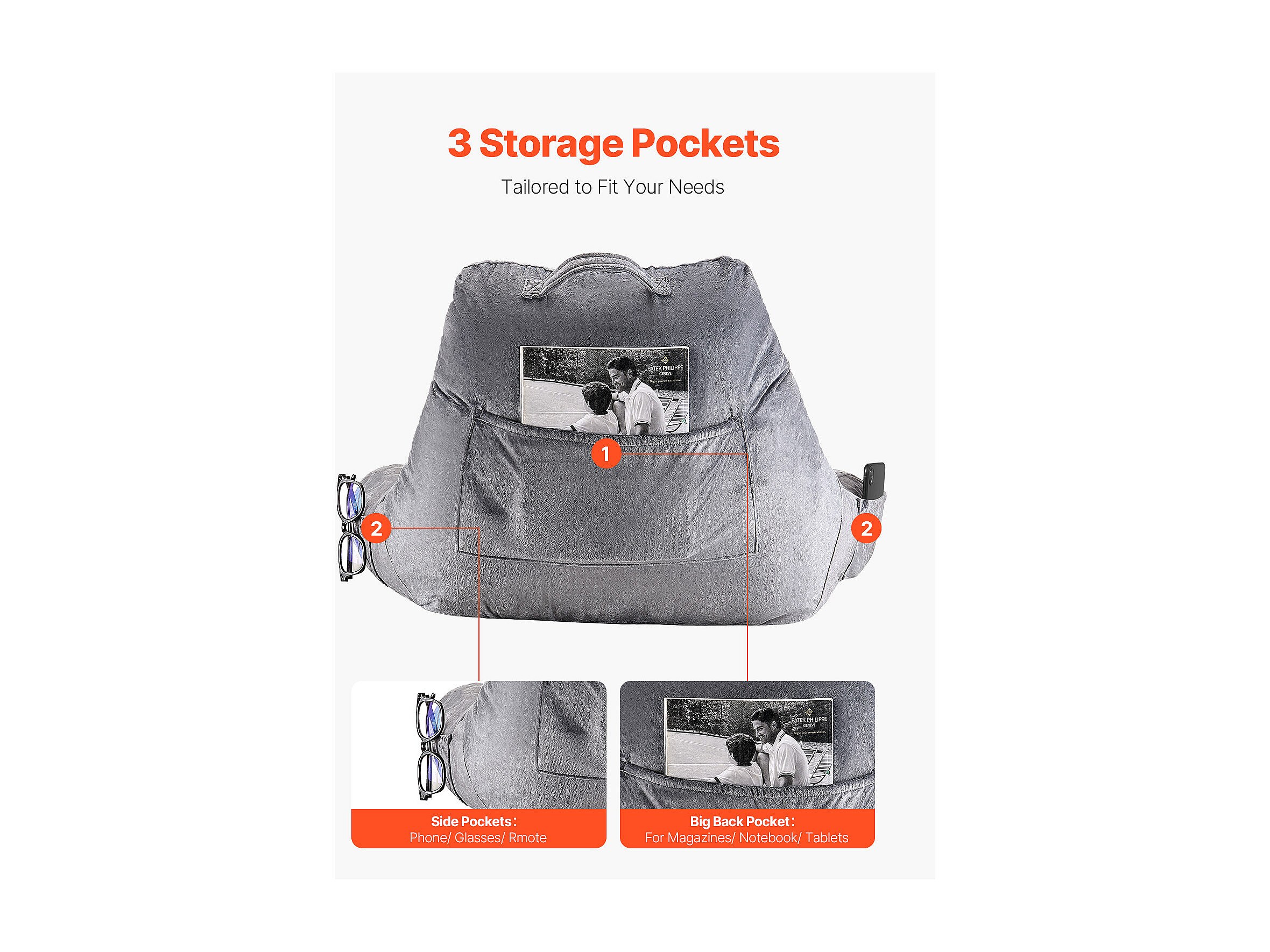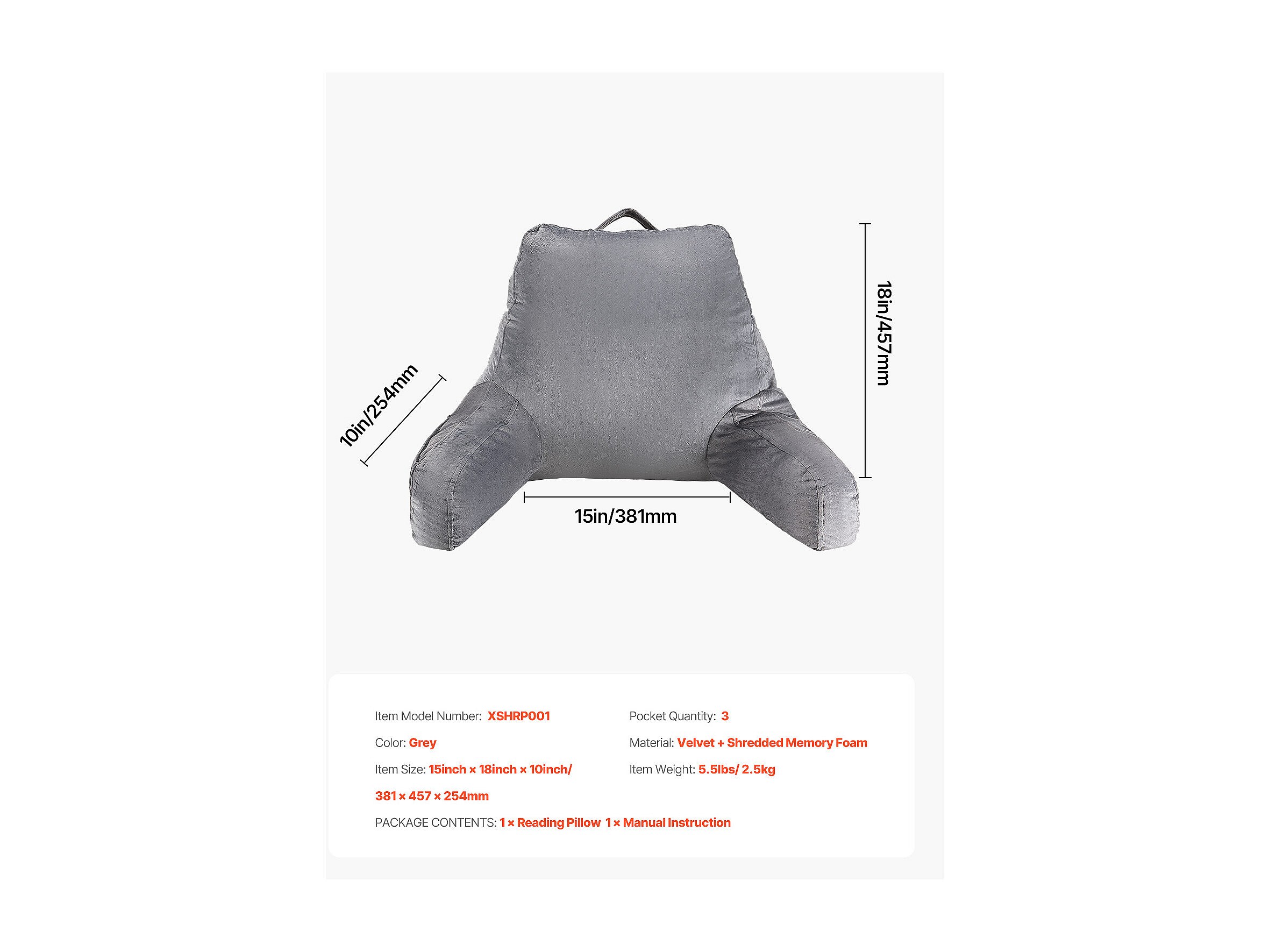 Coussin de Lecture SucceBuy Taille Standard, Oreiller en Mousse à Mémoire de Forme avec Tissu en Velours Doux Lavable, Équipé de 3 Poches Pratiques