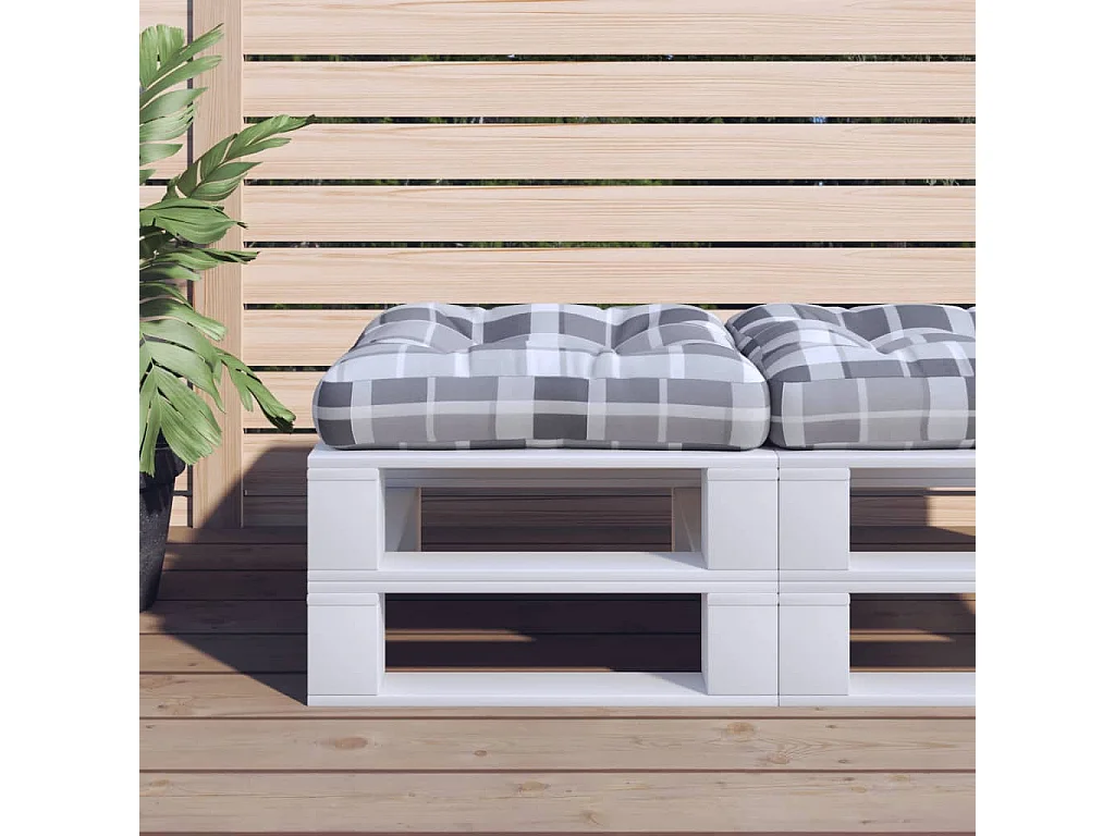 Coussin de palette motif à carreaux gris 50x50x12 cm tissu