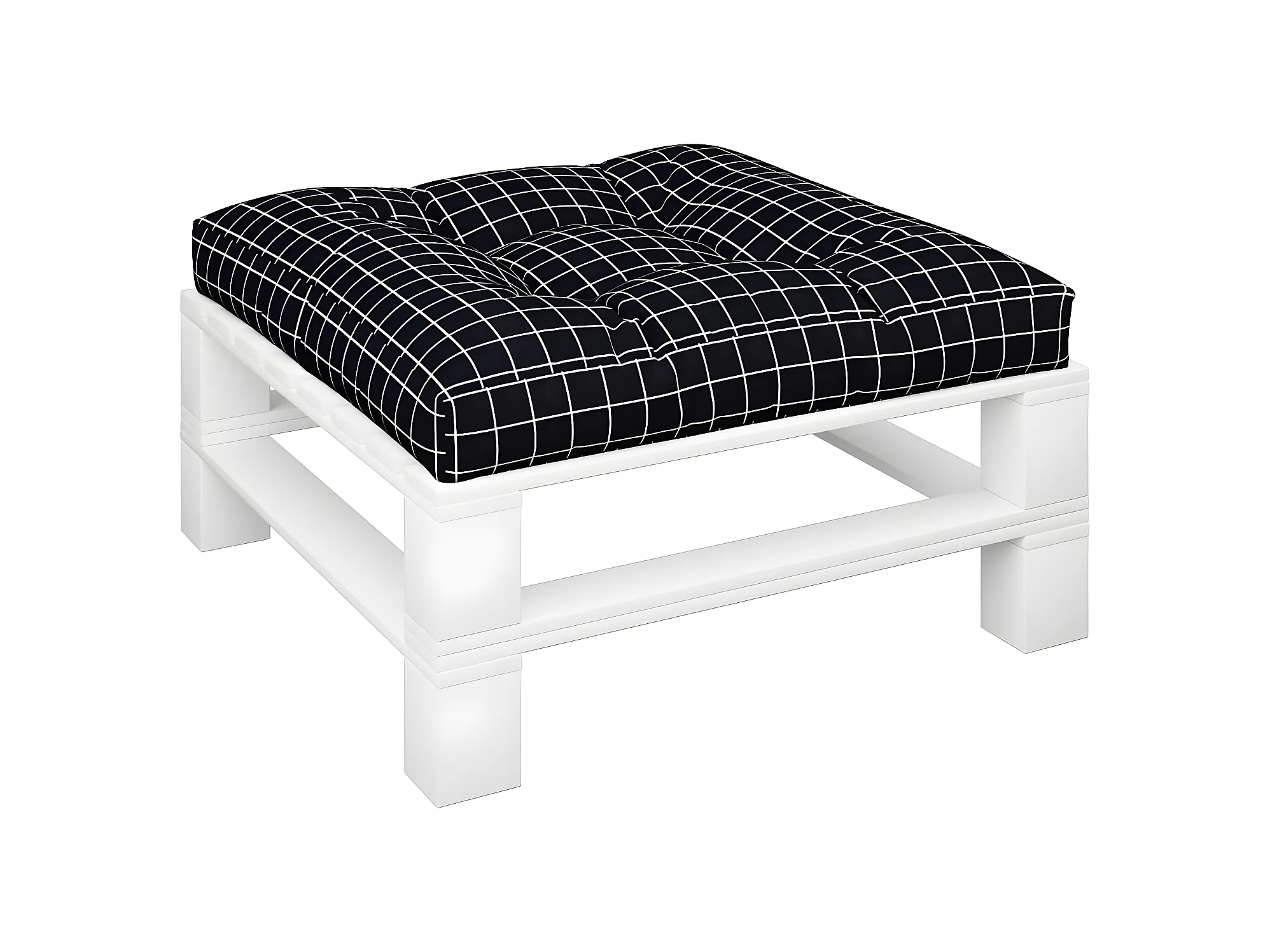 Coussin de palette motif à carreaux noir 80x80x12 cm tissu OFR15440