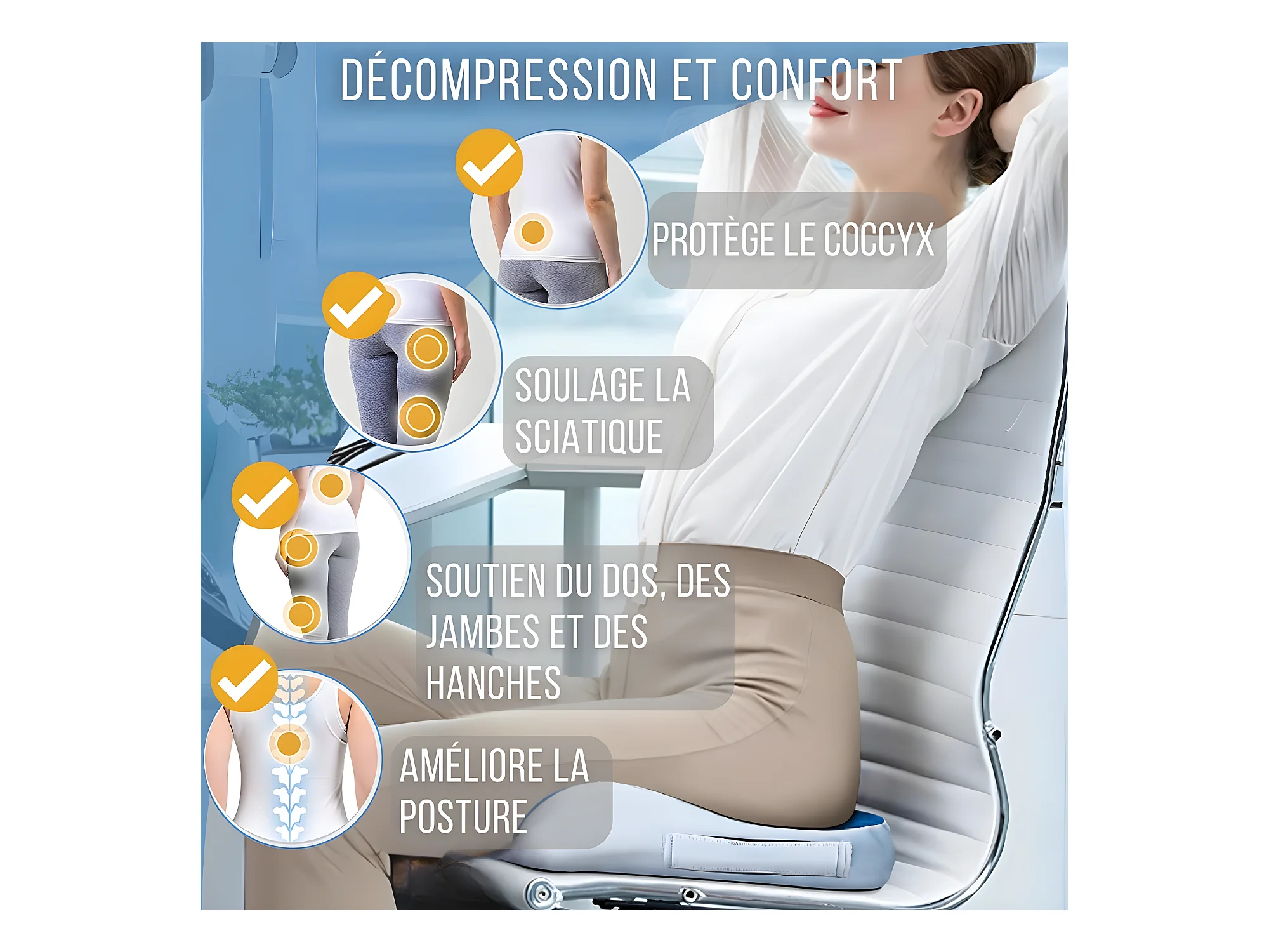 Coussin de Siège Ergonomique en Mousse a Mémoire de Forme - 45x37x9 - INPHYSIO