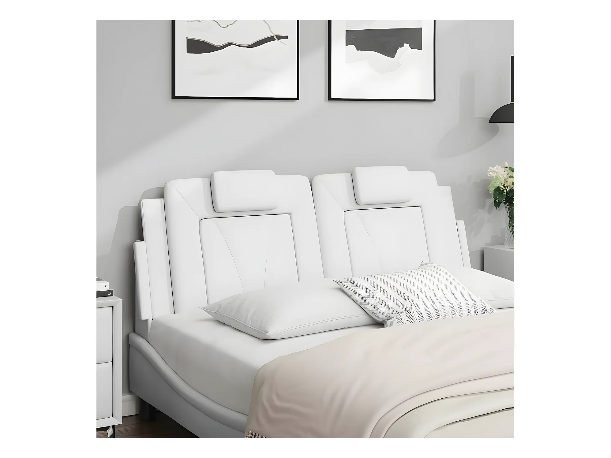 Tête de lit avec oreilles Blanc 147x16x78/88 cm Similicuir