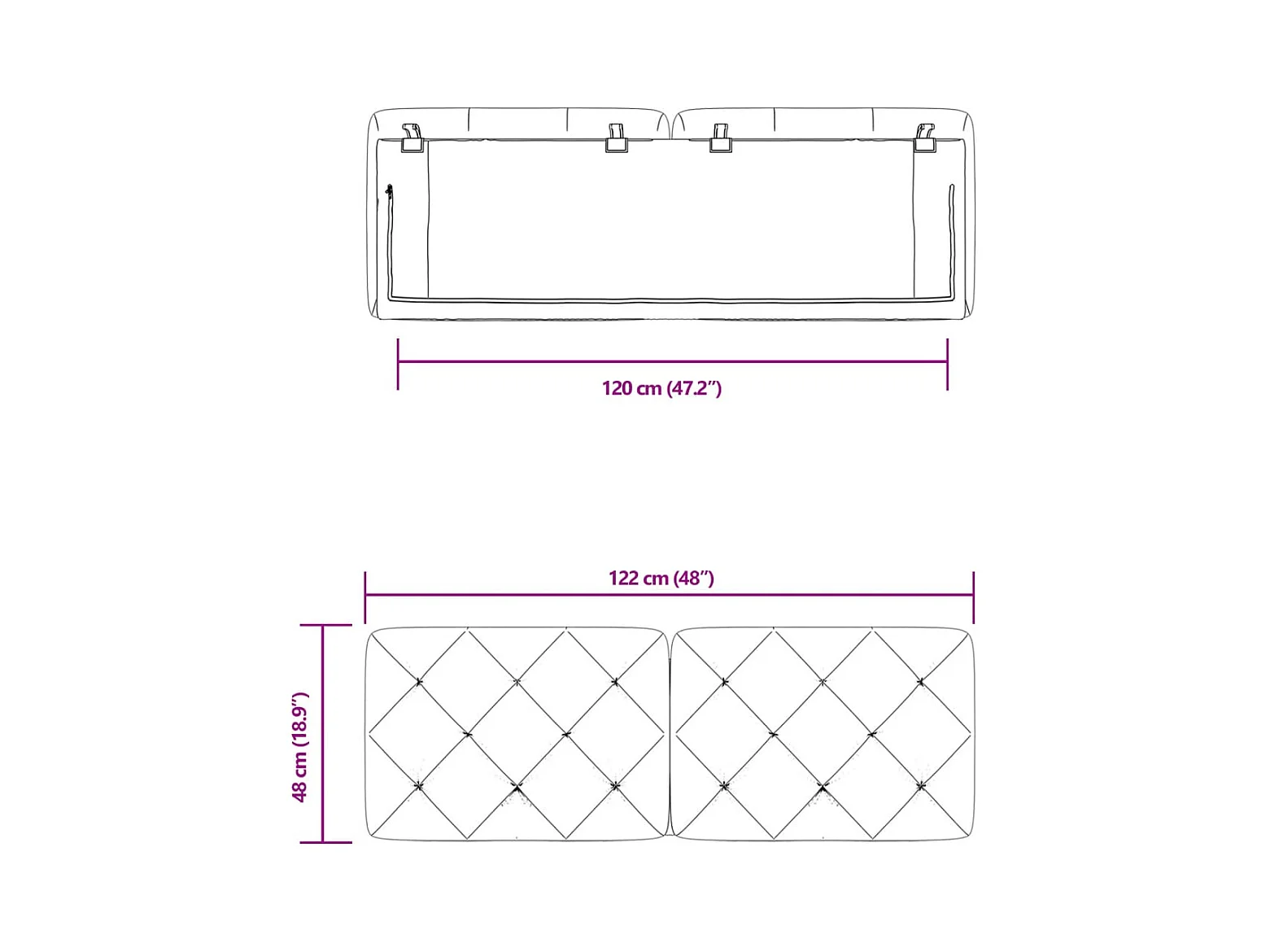 Coussin de tête de lit noir et blanc 120 cm similicuir