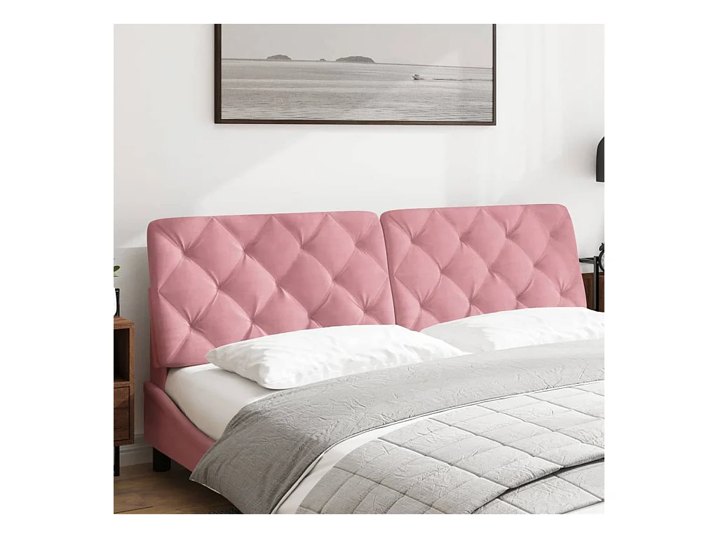 Tête de lit avec oreilles Rose 163x16x118/128 cm Velours POI18600 BonneVie Meuble